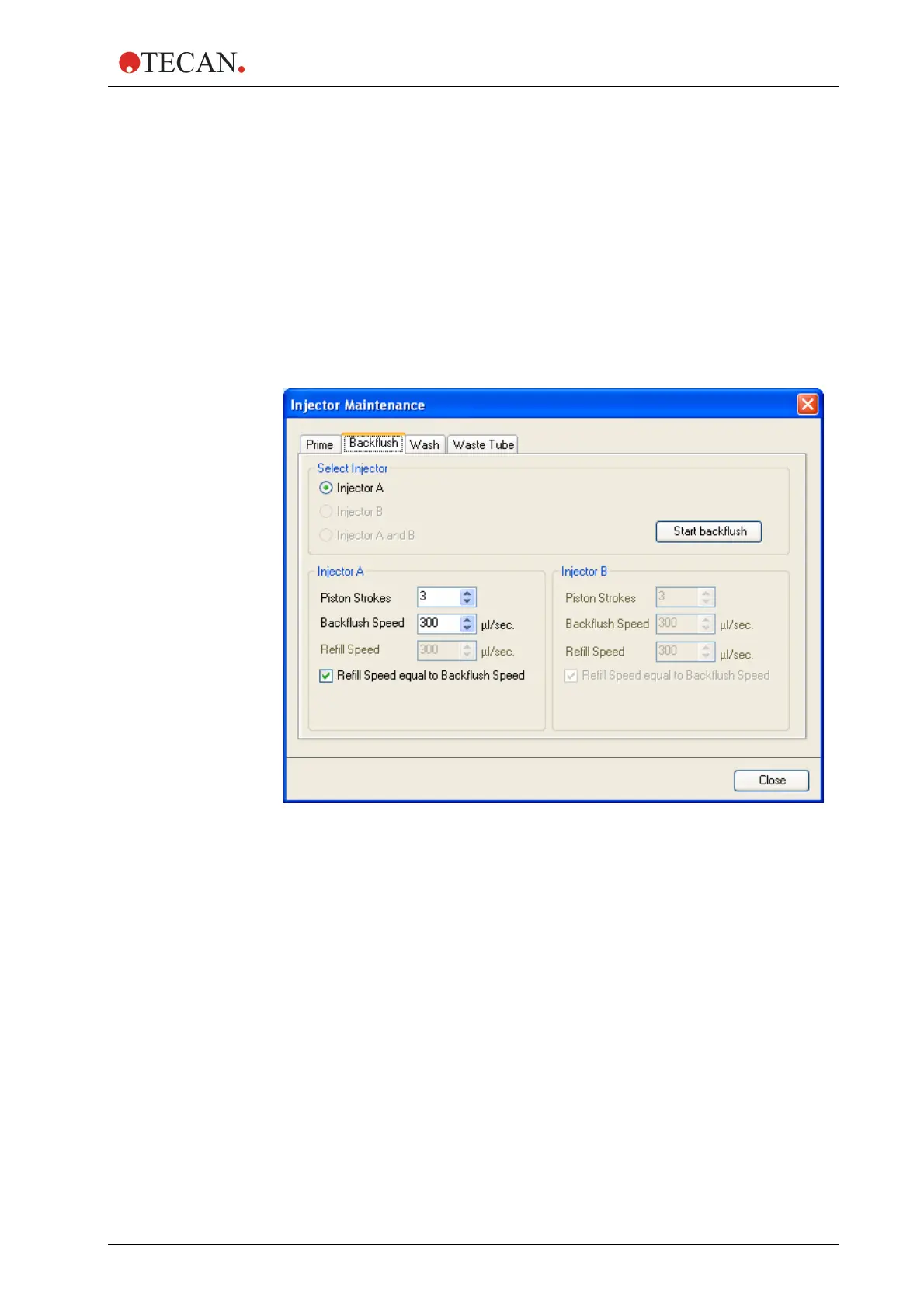and B (only ‘primed’ injectors are available for ‘backflush’).