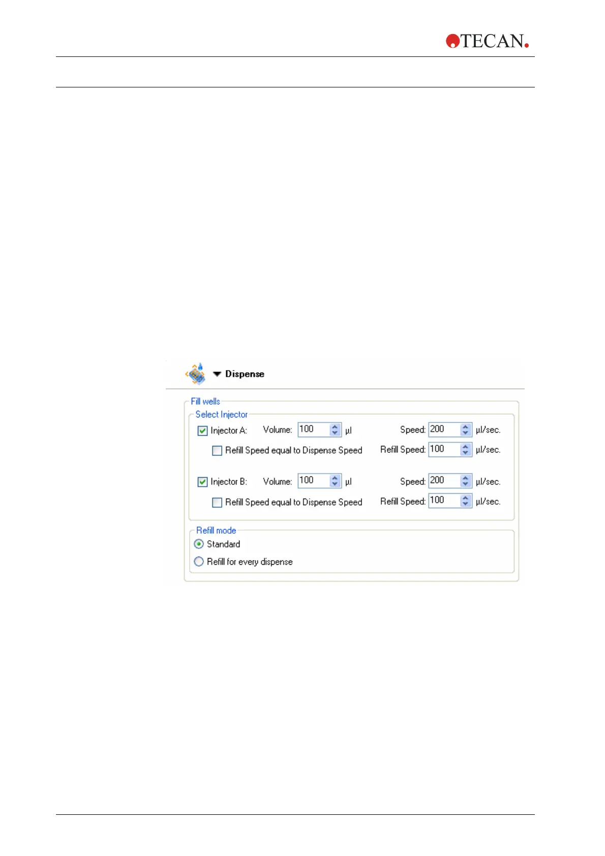 Select ‘Refill speed’ from 100 – 300 µl/sec. for each injector or select