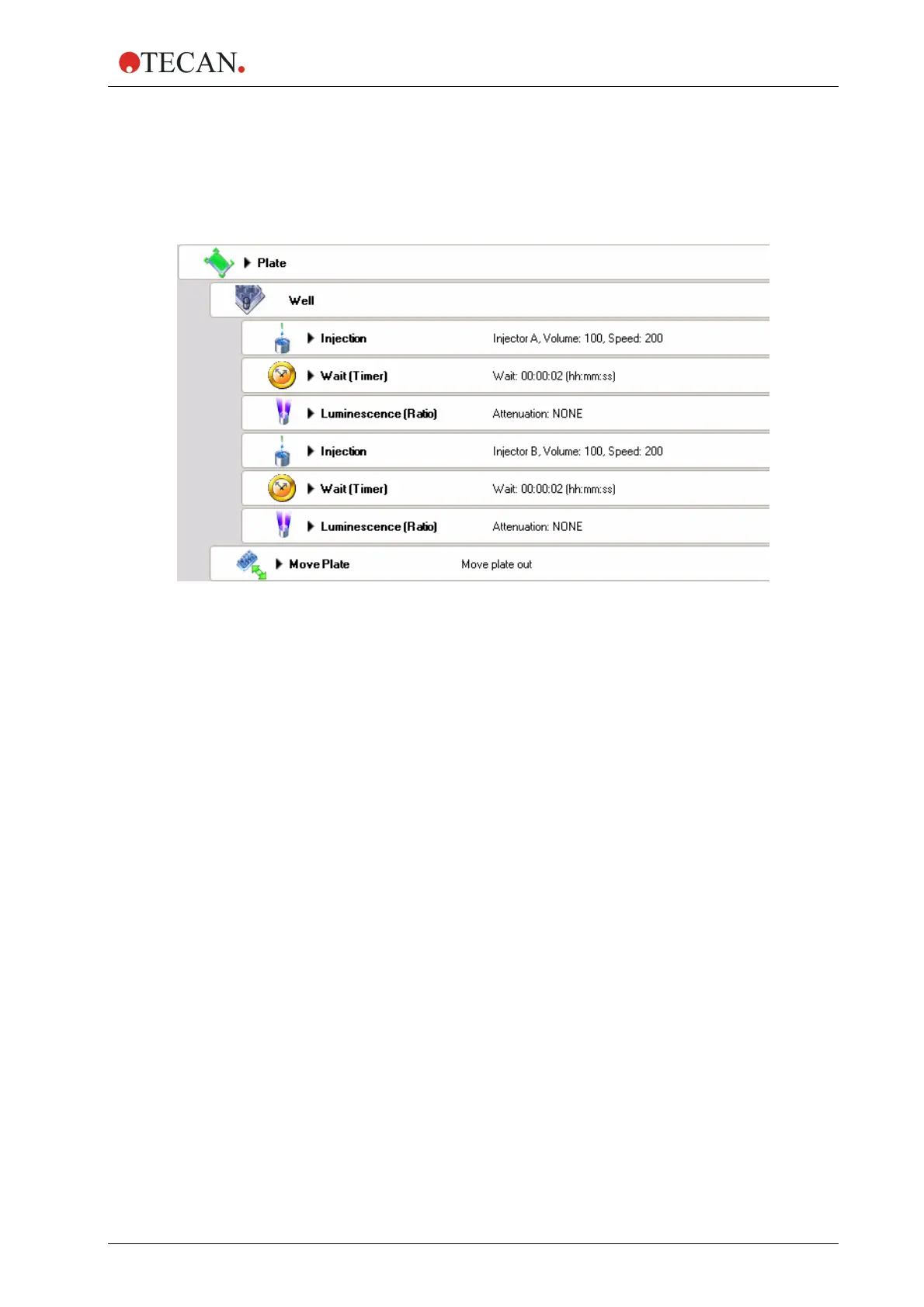 Injector A injects 100 µl with speed 200 µl/sec., refill mode: standard