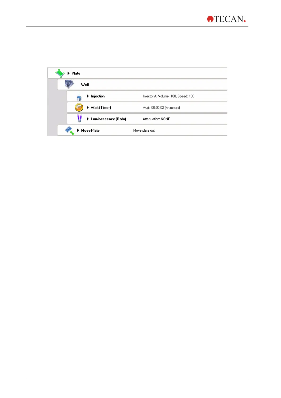Injector A injects 100 µl with speed 100 µl/sec., refill mode: