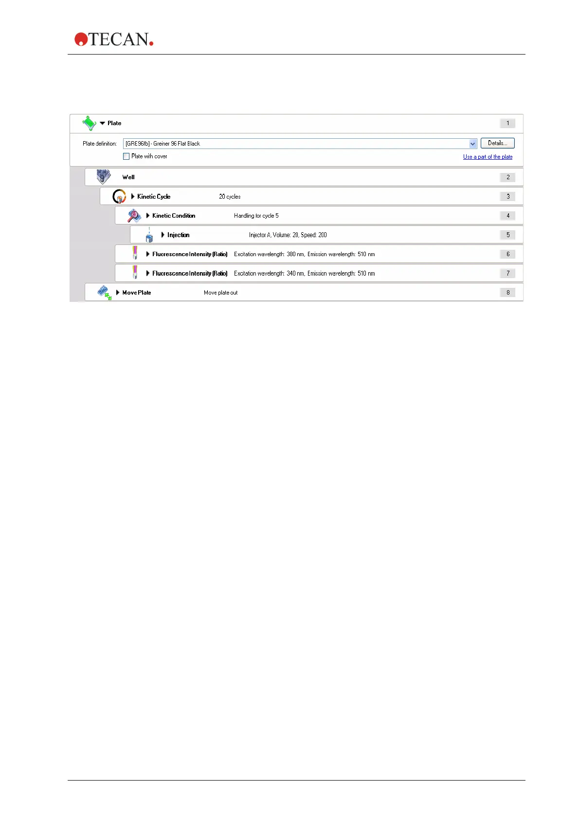 Injector A injects 20 µl with speed 200 µl/sec., refill mode: