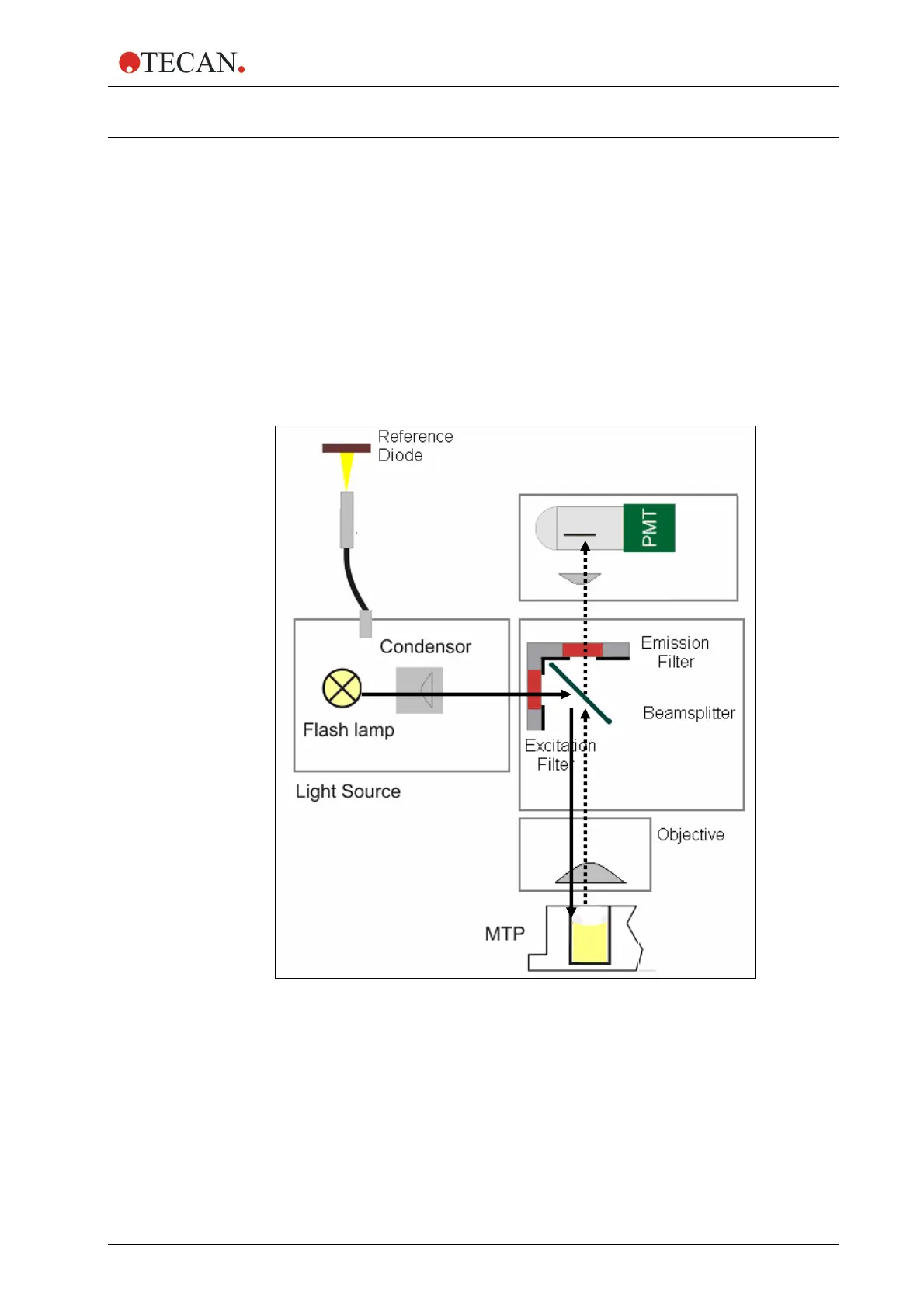 5-5. The solid arrows indicate the excitation light path; the dashed arrows