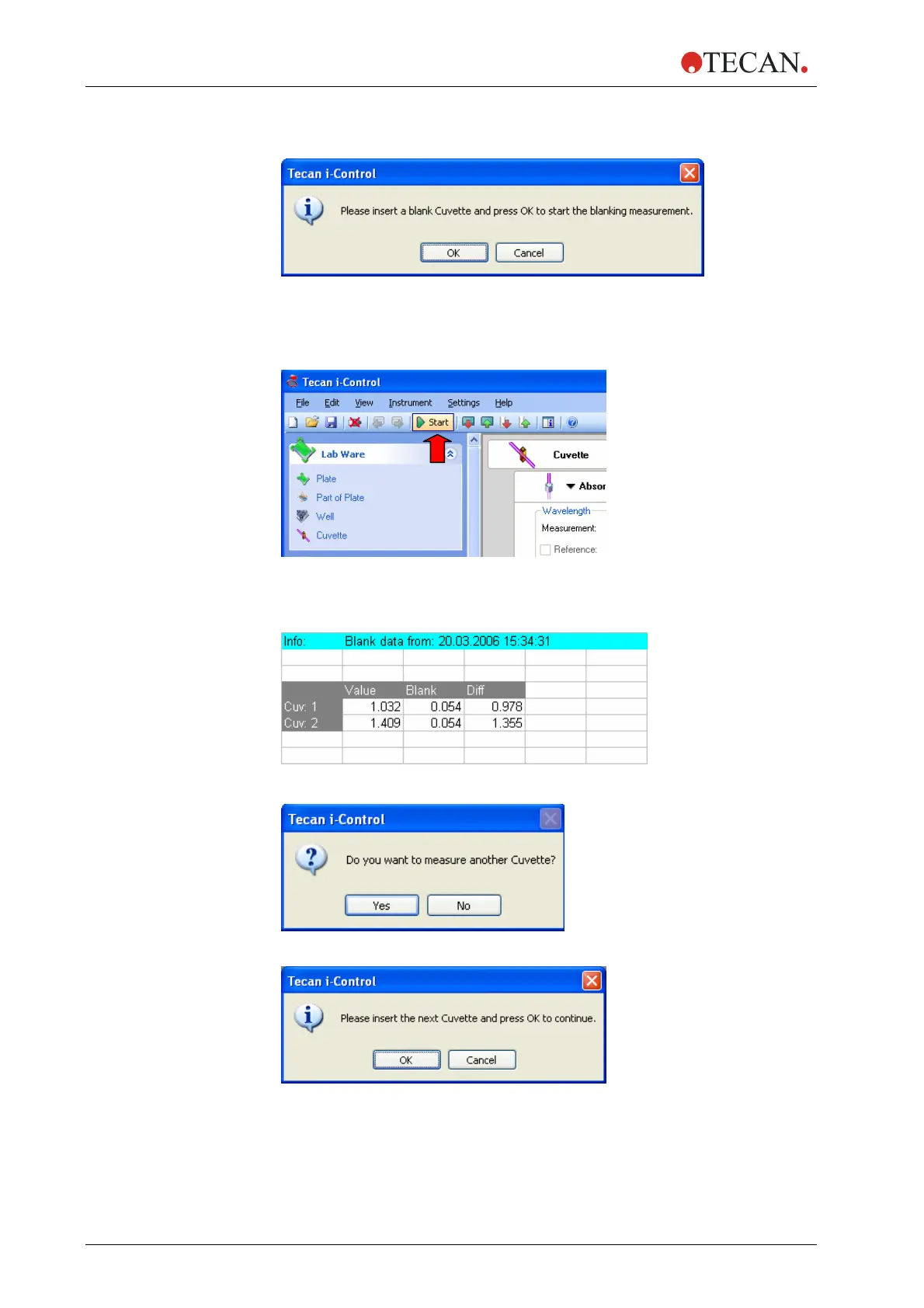 Insert the blank cuvette and click OK to start the blank measurement. The