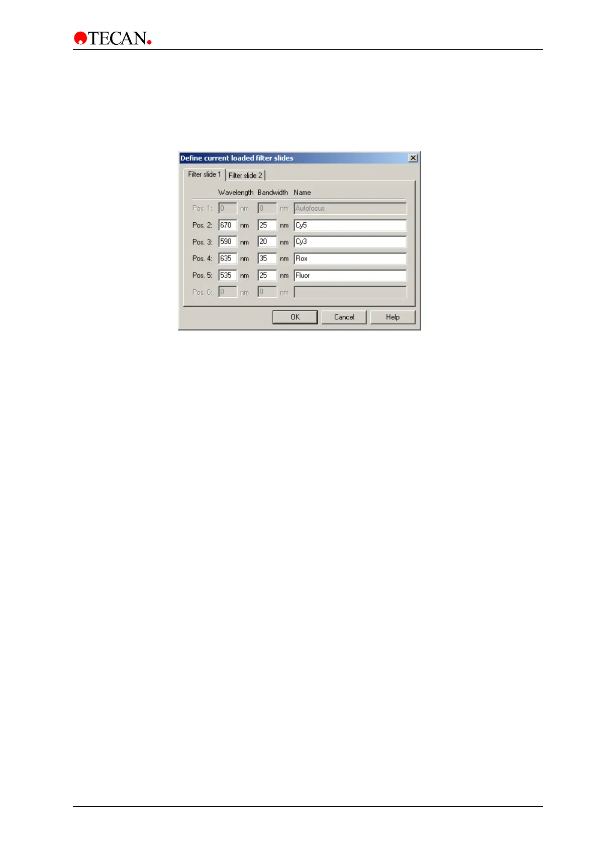 Pos. 1 - Pos. 6 static text This static text corresponds to the filter positions on