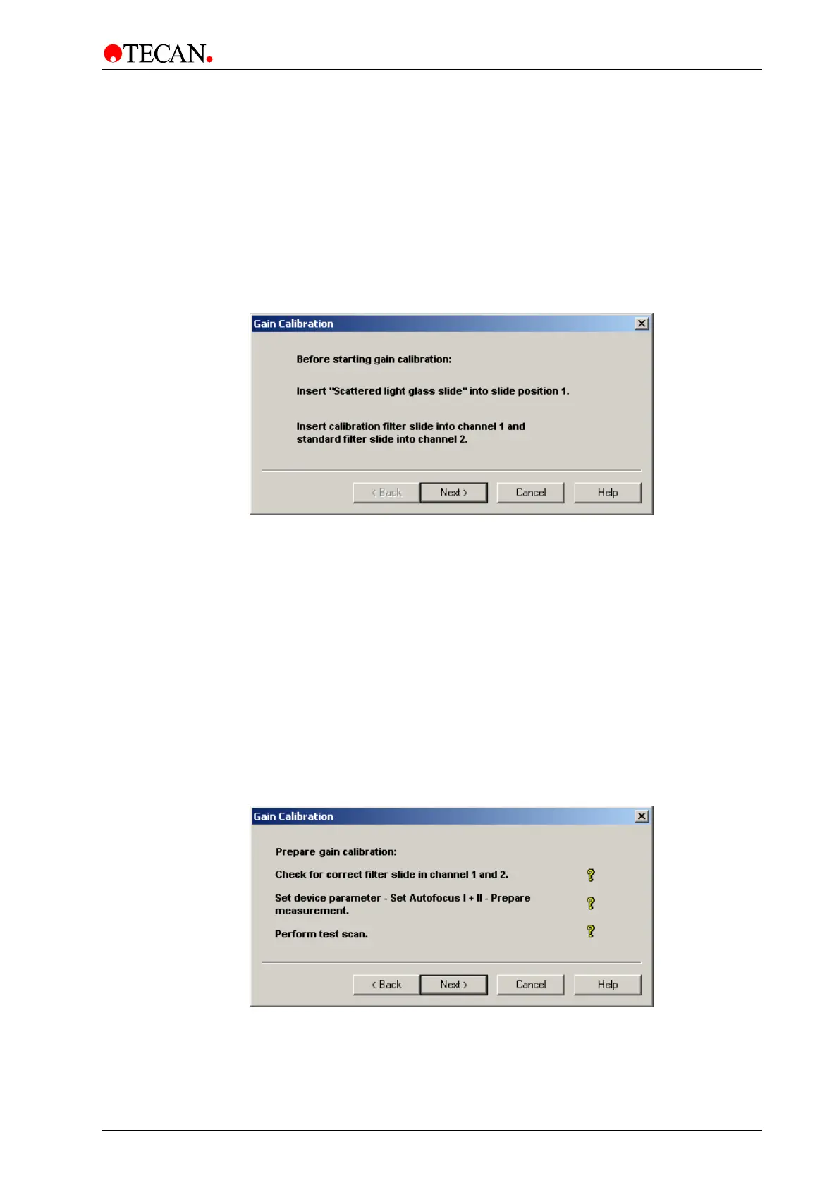 In the Prepare Gain Calibration window the Tecan LS SERIES SCANNER