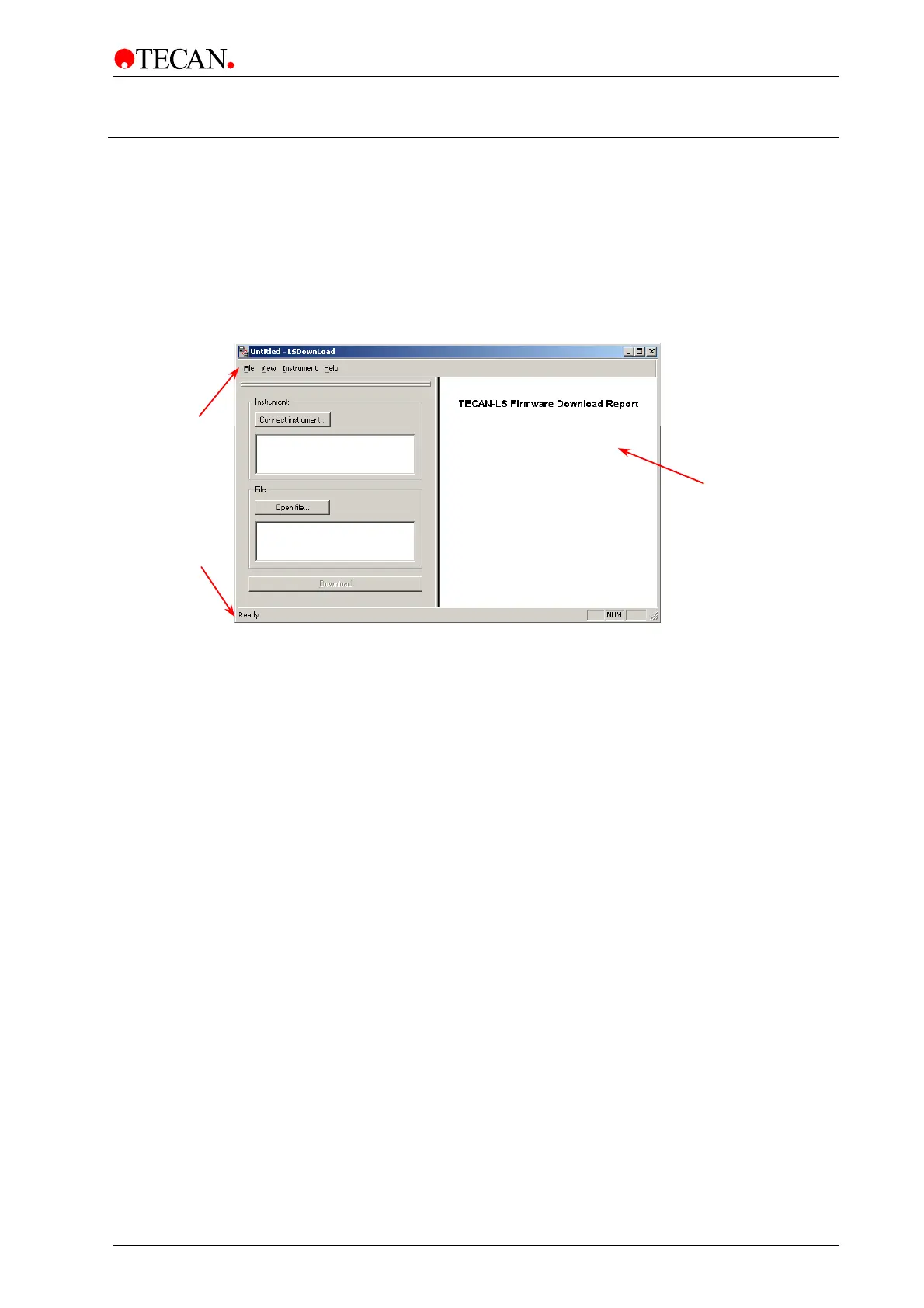LSDownload Report Window contains a menu bar, the report area and the