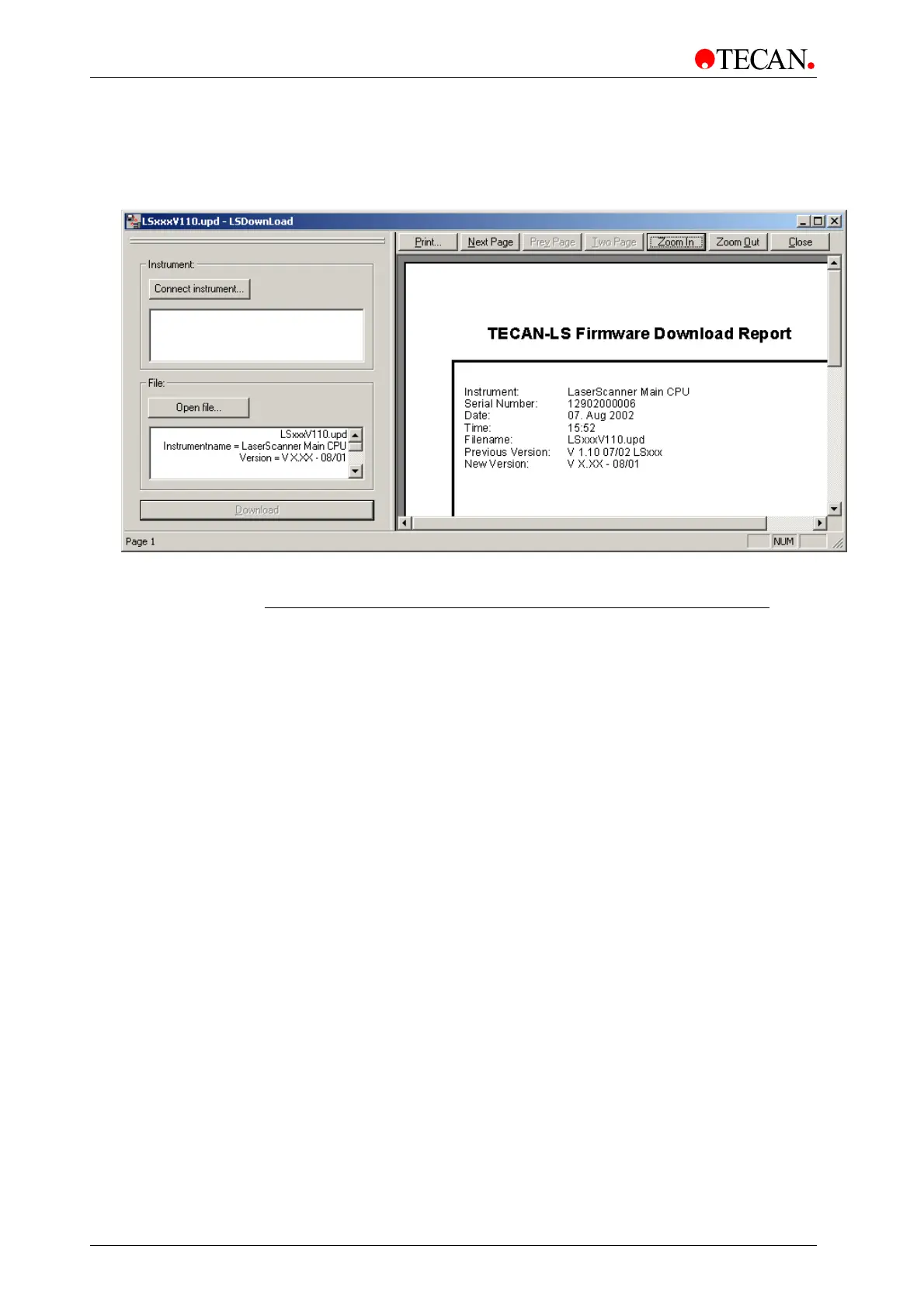 preview screen and the first page of the report is shown.