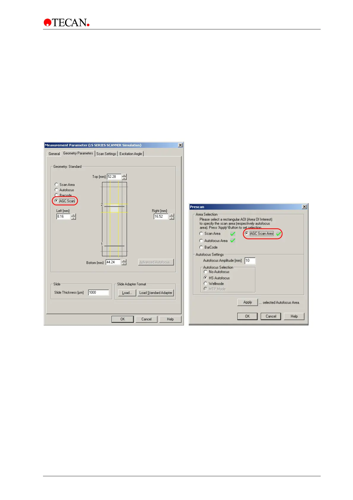 Figure 6-4 Geometry Parameters tab Figure 6-5 Prescan dialog box