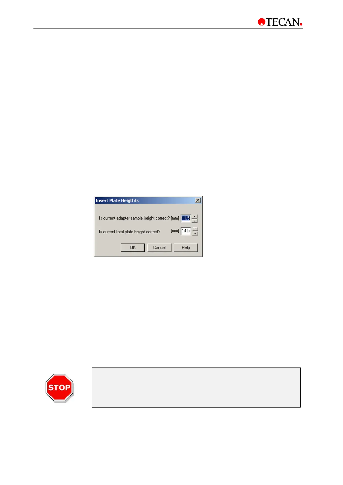 If the heights inserted in this dialog are not correctly entered, the