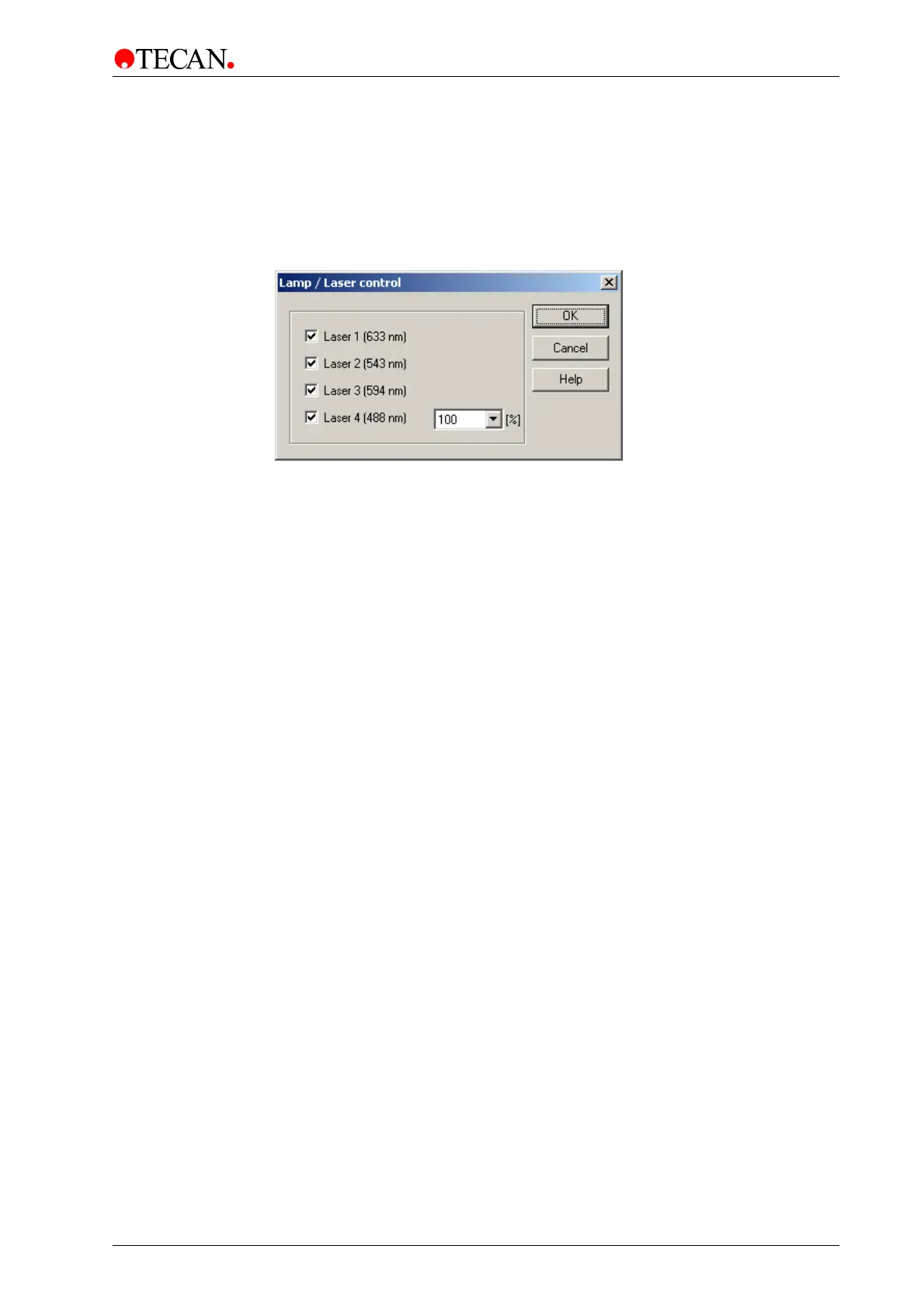 In the Laser Control dialog box specific lasers (1-4) can be activated /