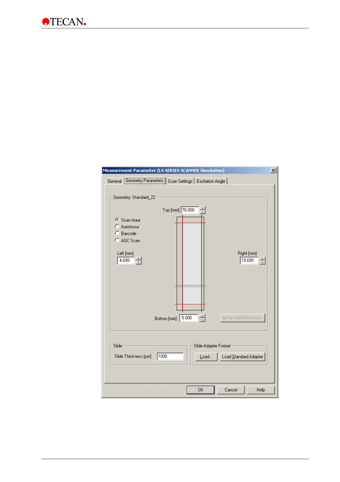 In the Geometry Parameters tab the Scan area, the location of the Autofocus
