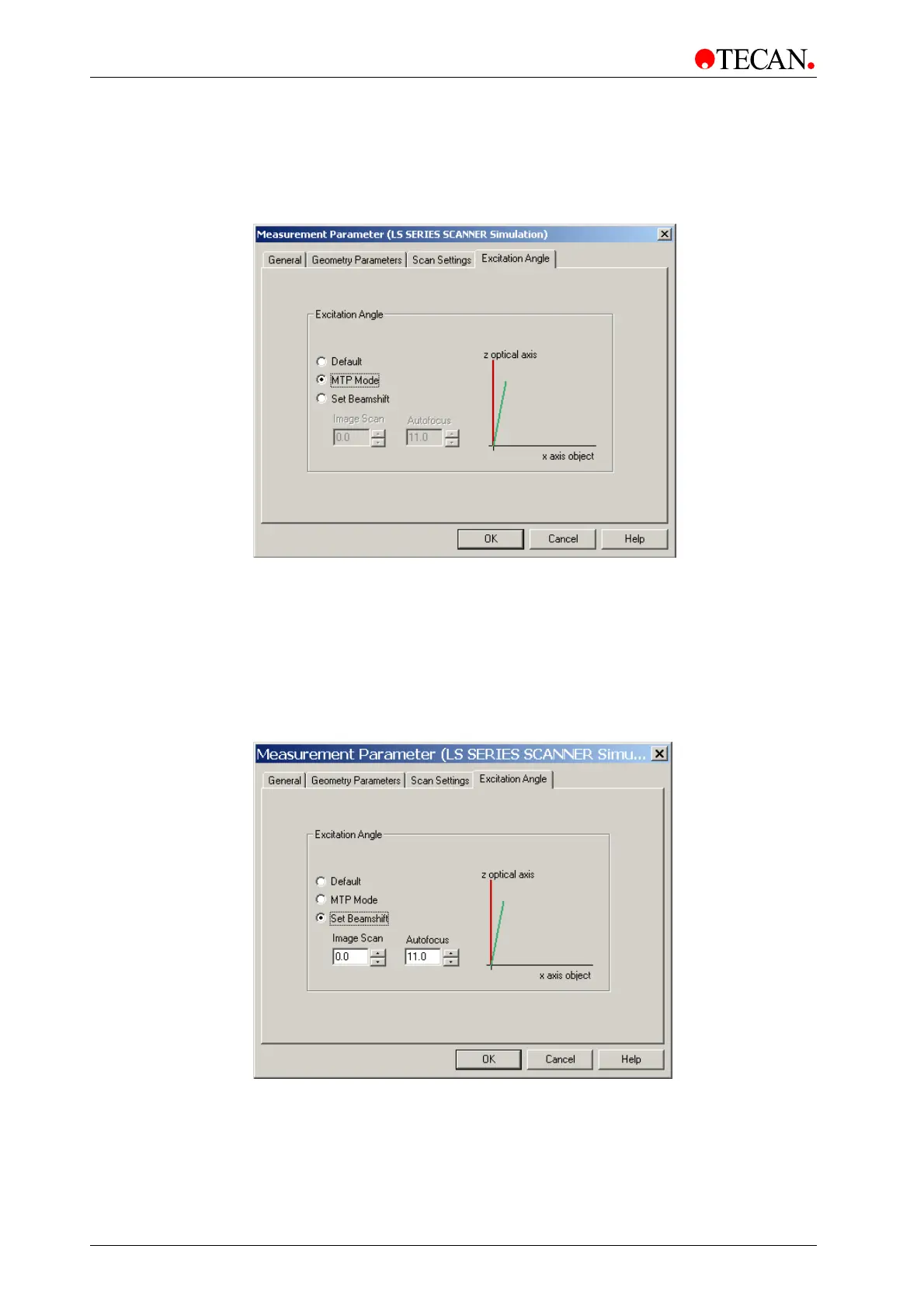 The excitation angle for the image scan can be set to any value between 0° and
