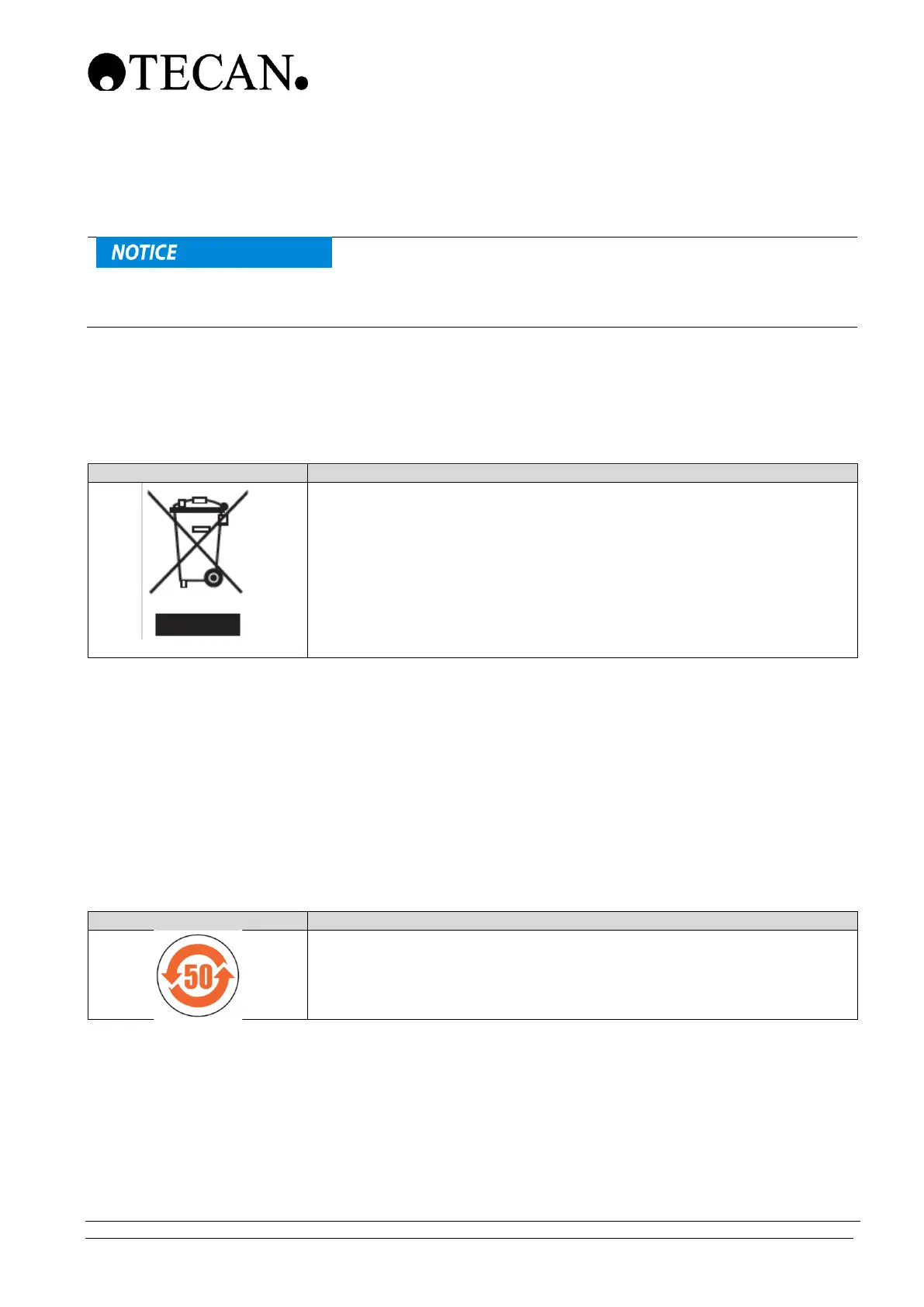 In accordance with the requirements specified in SJ/T11364‑2014, all electronic and electrical Tecan