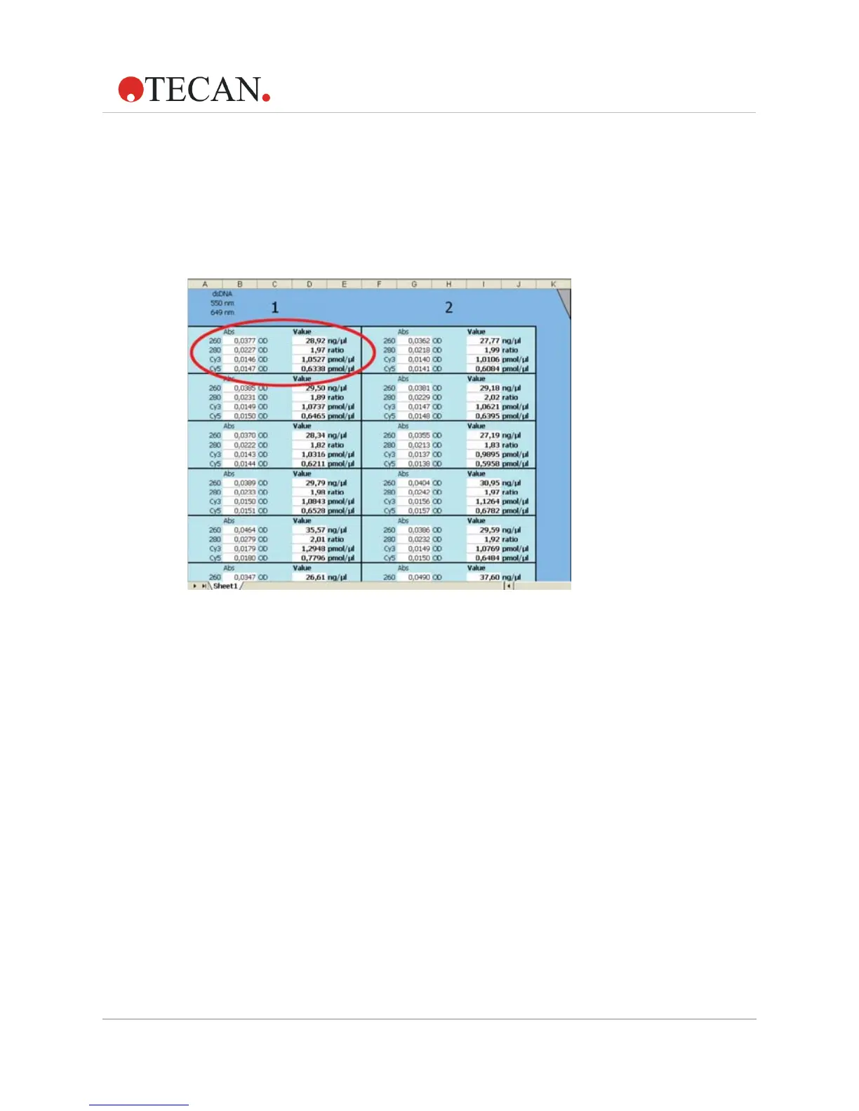 automatically calculated nucleic acid concentration, the 260/280 ratio,