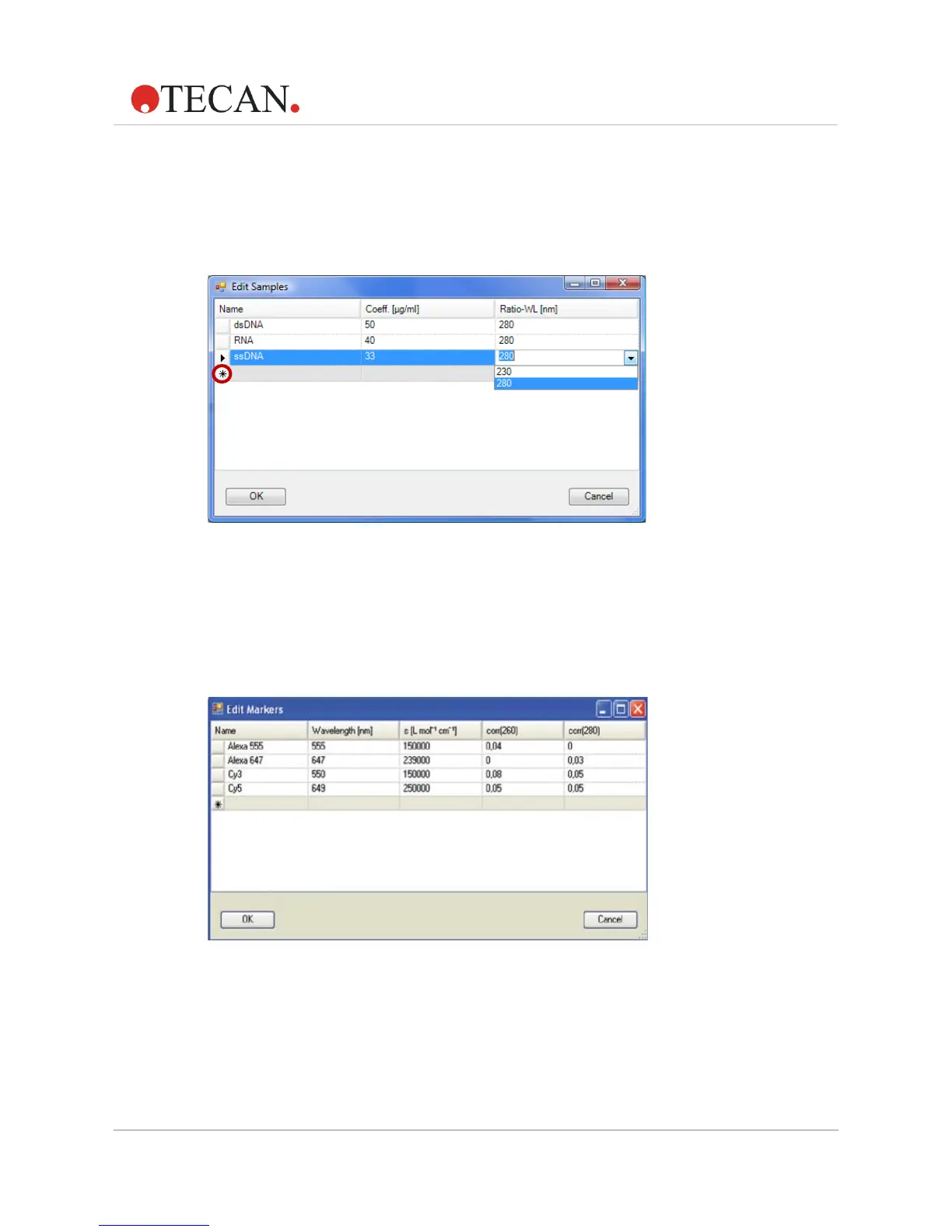 set at 280 nm, otherwise no marker can be selected for Dye 1 or Dye 2 and