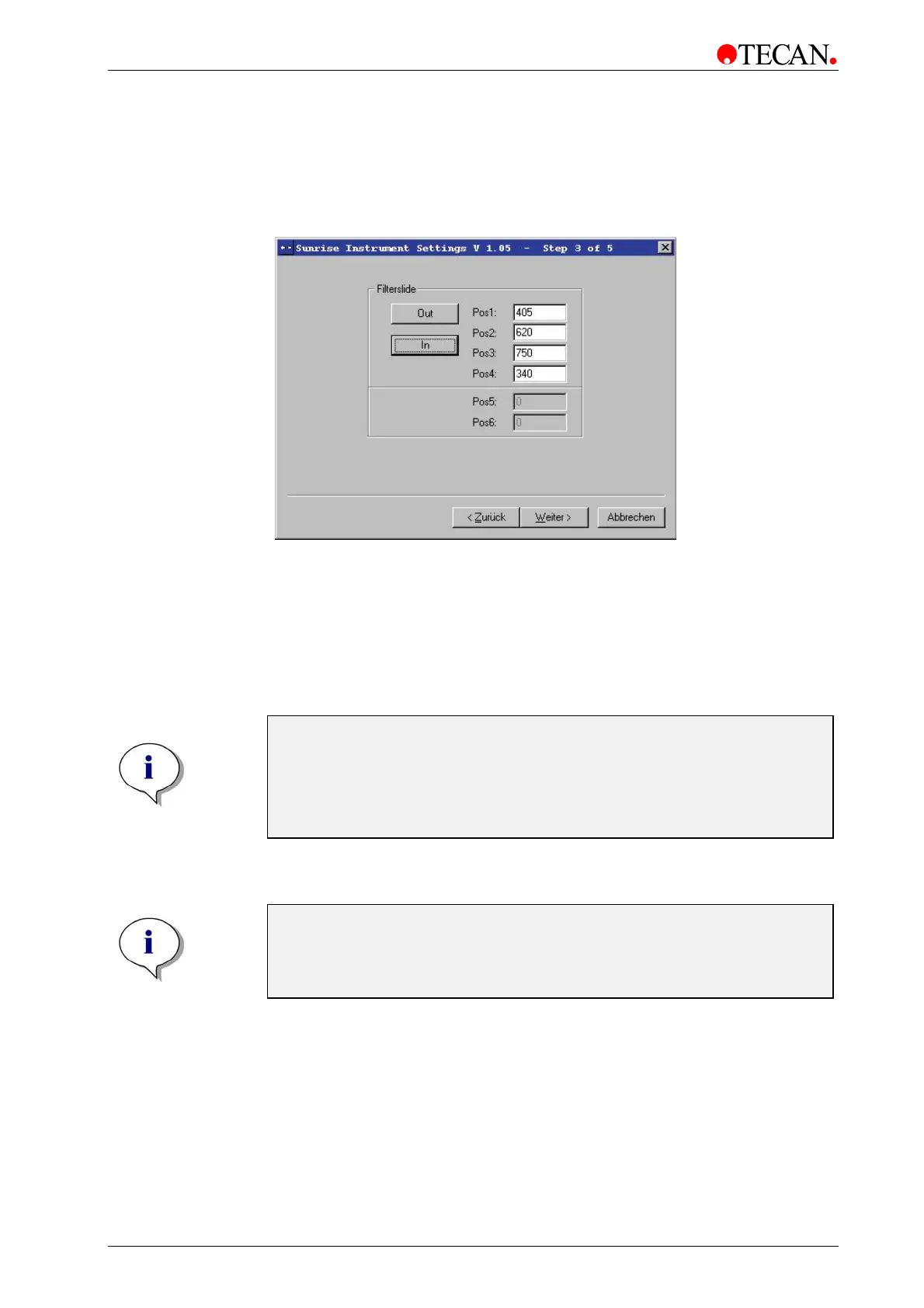 Pos1 - 4 show the filter values for the currently loaded absorbance filters.