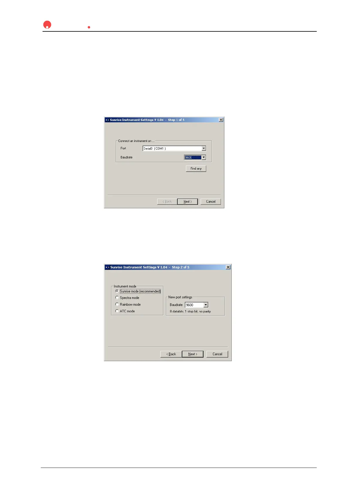 3.8.2 Starting the “Sunrise Instrument Settings”