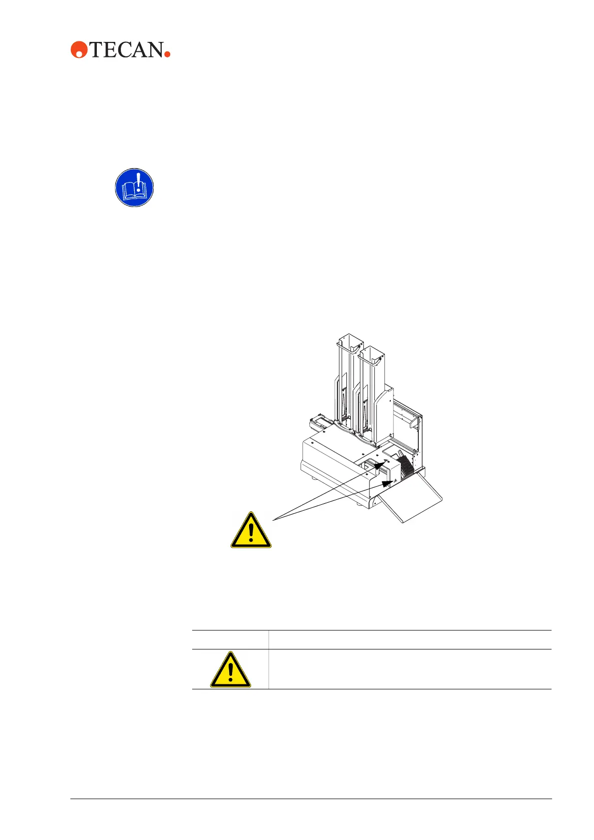 The figure shows the safety notices that are attached to the Te-Stack. It also
