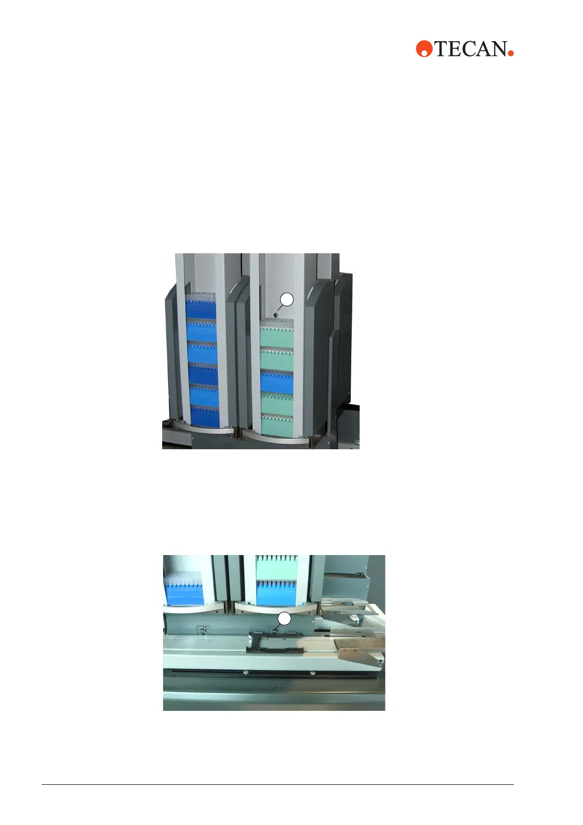 The stacker columns in the Te-Stack base units are filled with microplates, DiTi