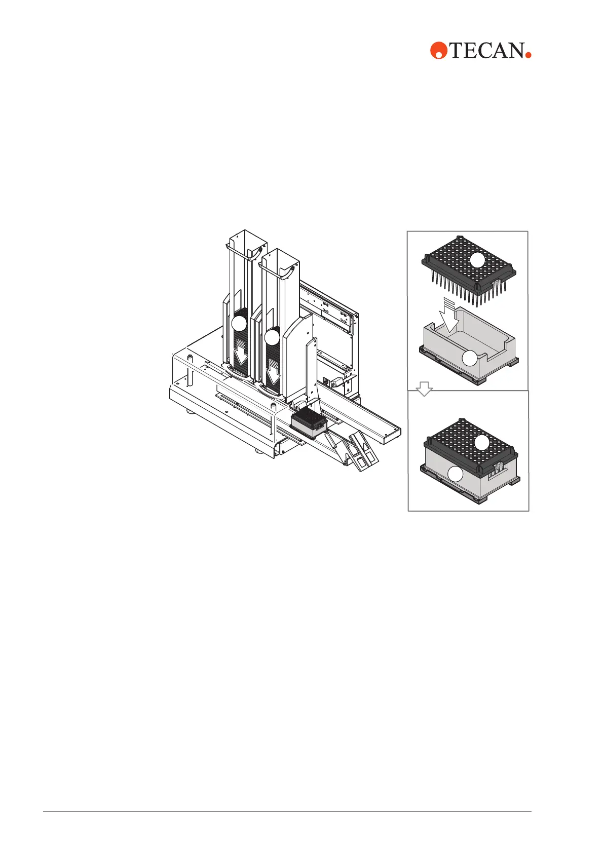 Loading The support carrier (A) is moved below the Te-Stack stacker column (C) to be