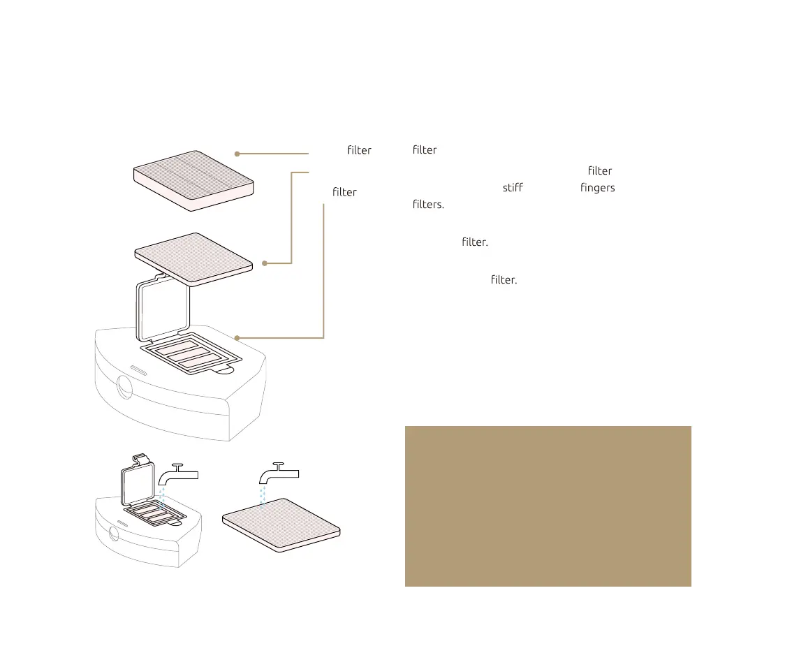 • Rinse the dust box, sponge, and air with clean