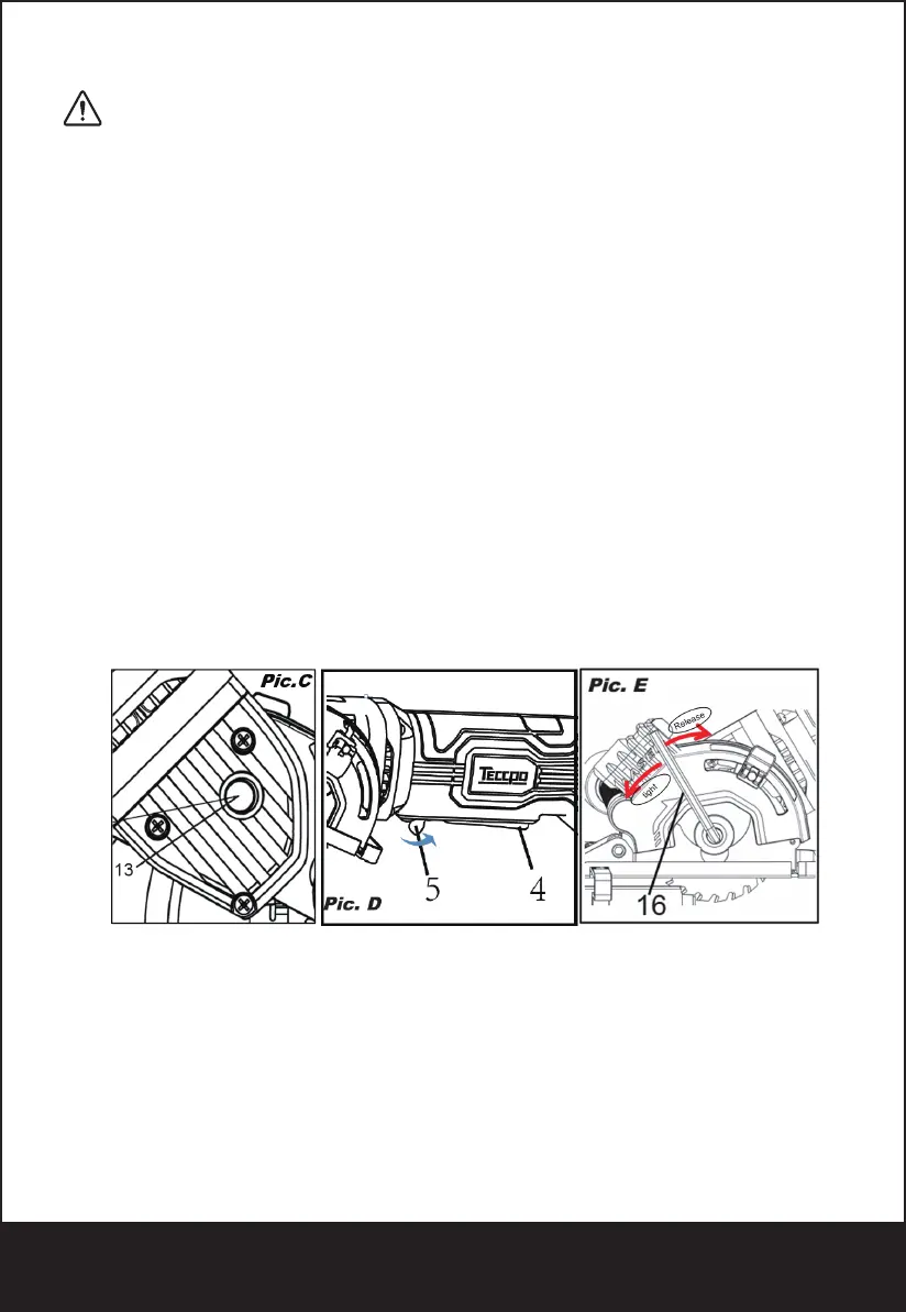 como la cuchilla ingrese al material, la protección inferior debe liberarse. Para todas las demás