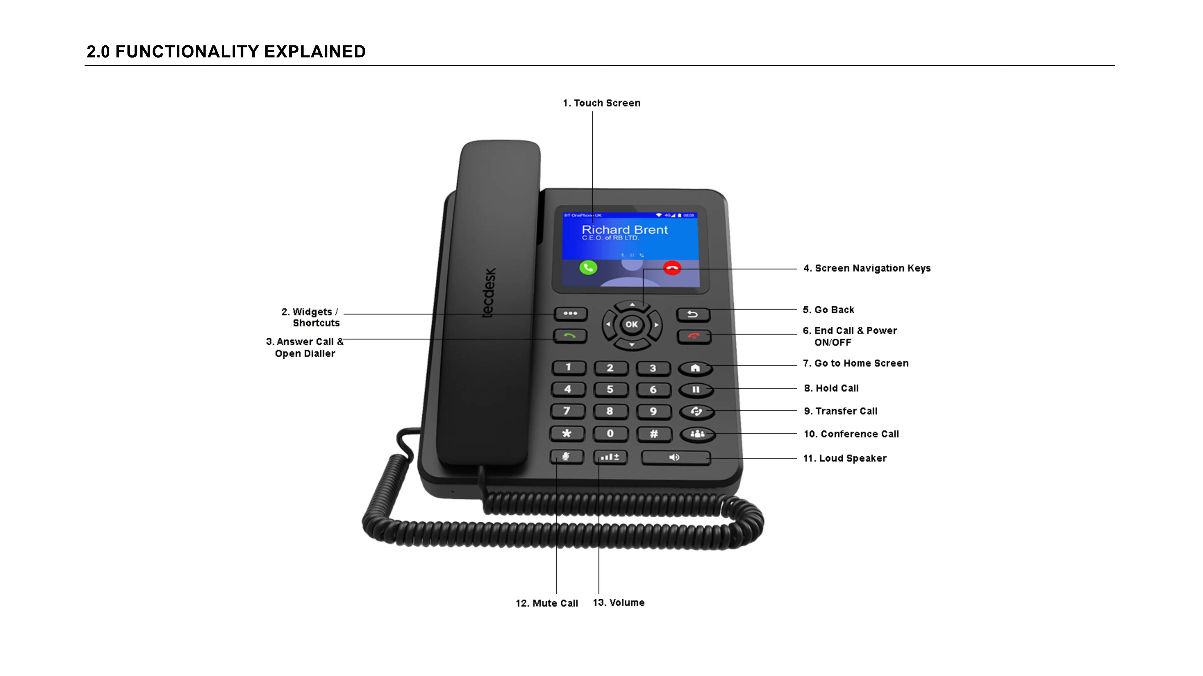 Tecdesk 4 - Functionality Overview; Key Interface Elements Explained; Core Call Handling Keys; Audio and Navigation Controls