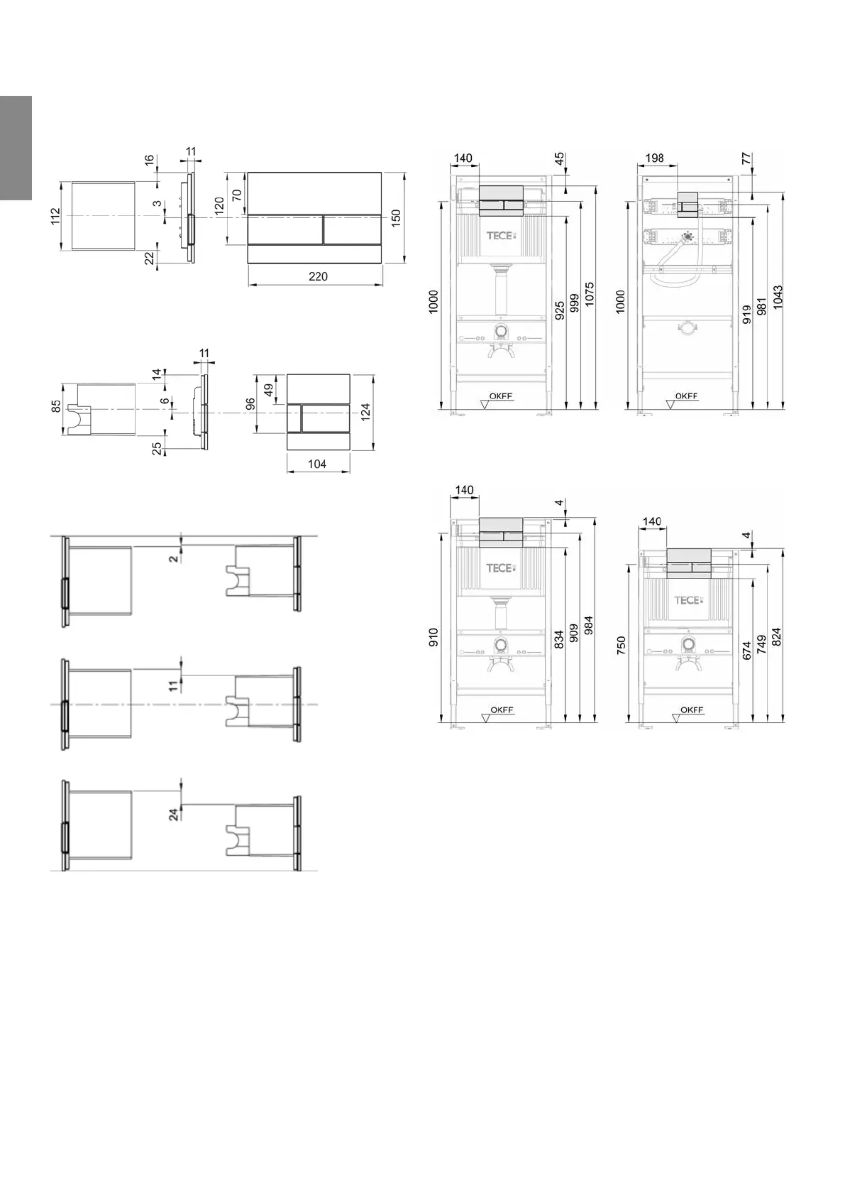TECE flush plates – installation dimensions