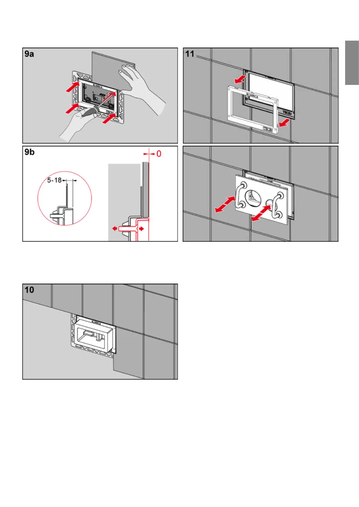 After adjusting the depth, you can tile right up to the instal-