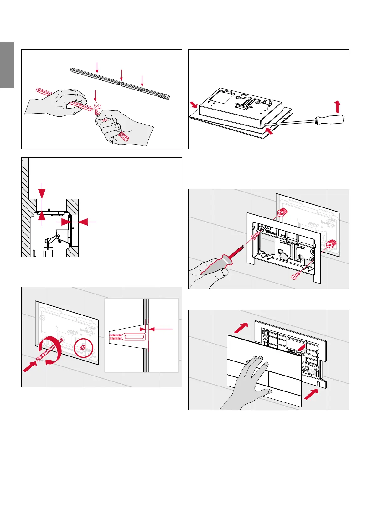 Break o the actuating rods according to the wall struc-