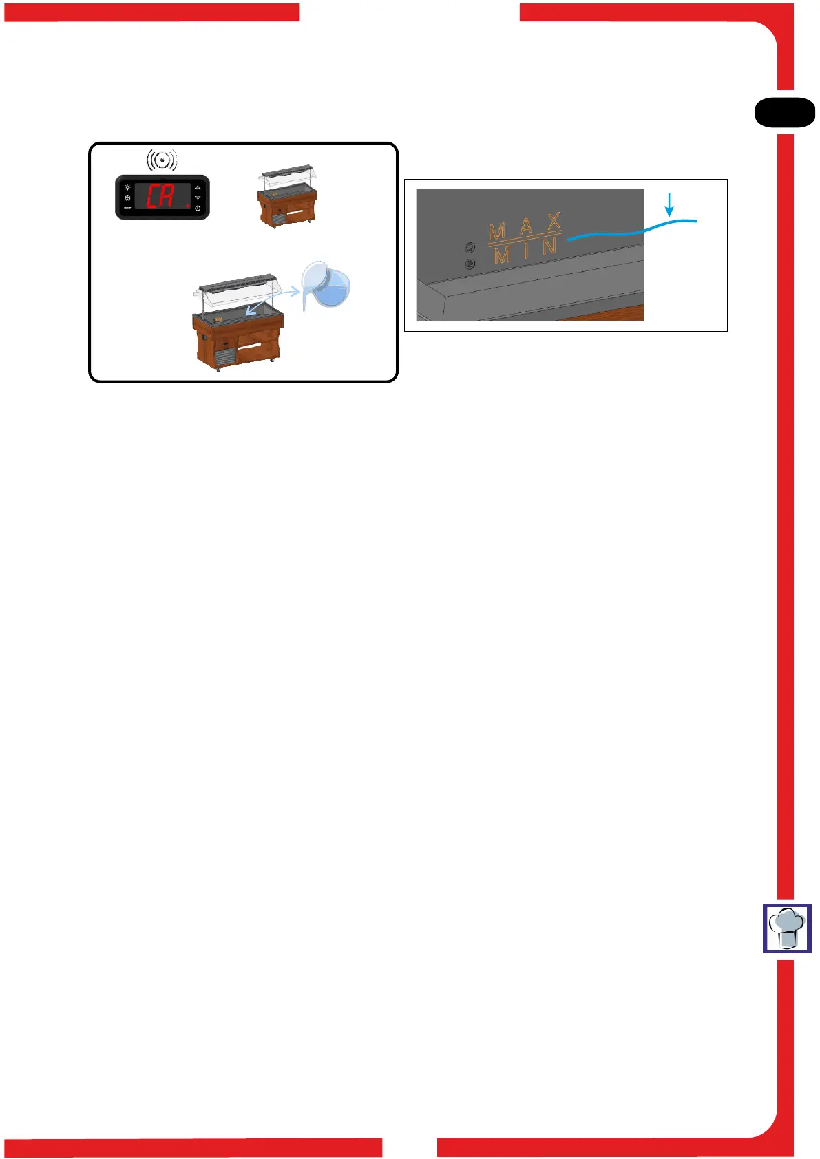 livello indicato sulle pareti della vasca. L’apparecchiatura è dotata di un segnale acustico che indica la2.