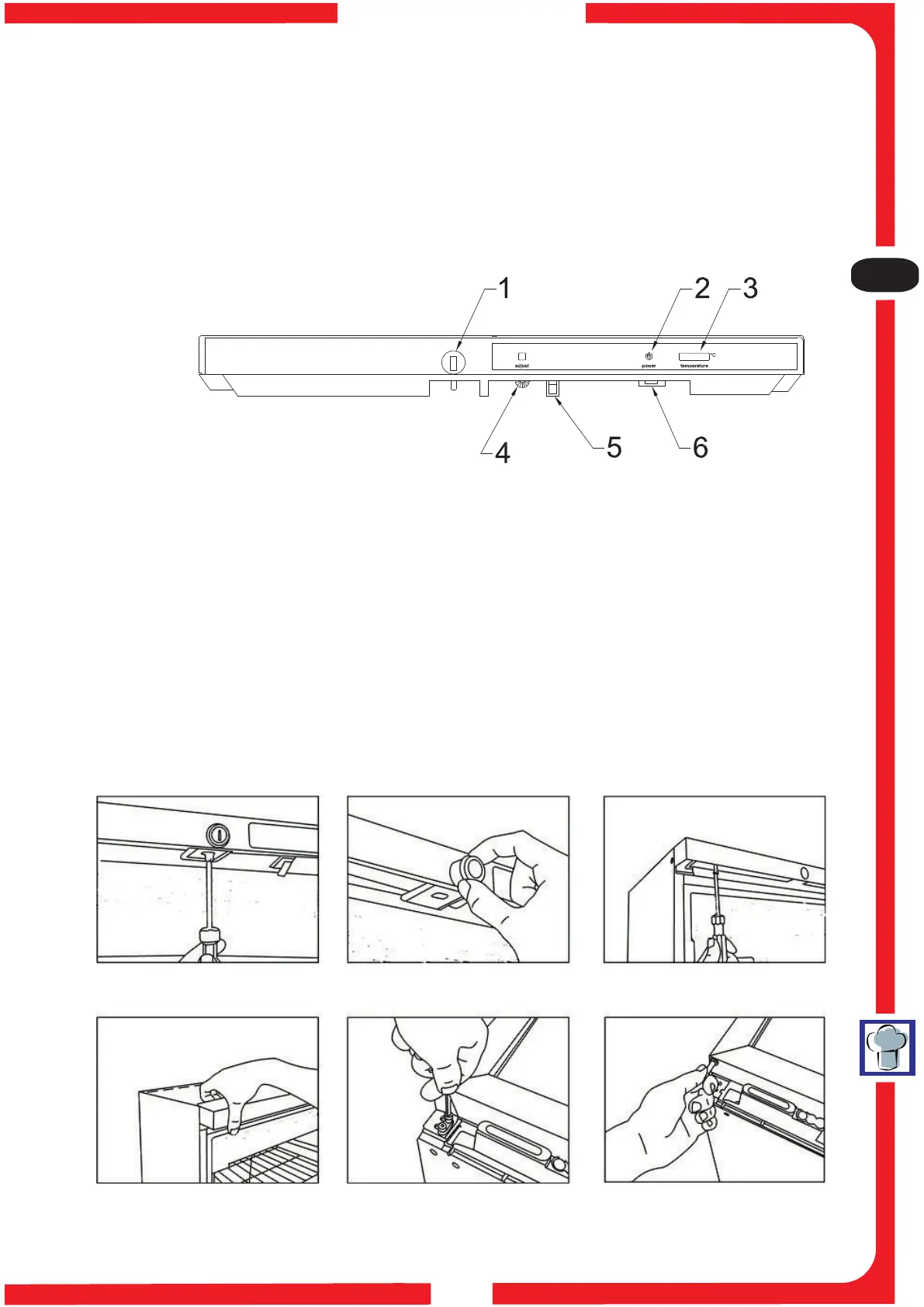 1. Serrure (la serrure n'existe pas sur tous les appareils).