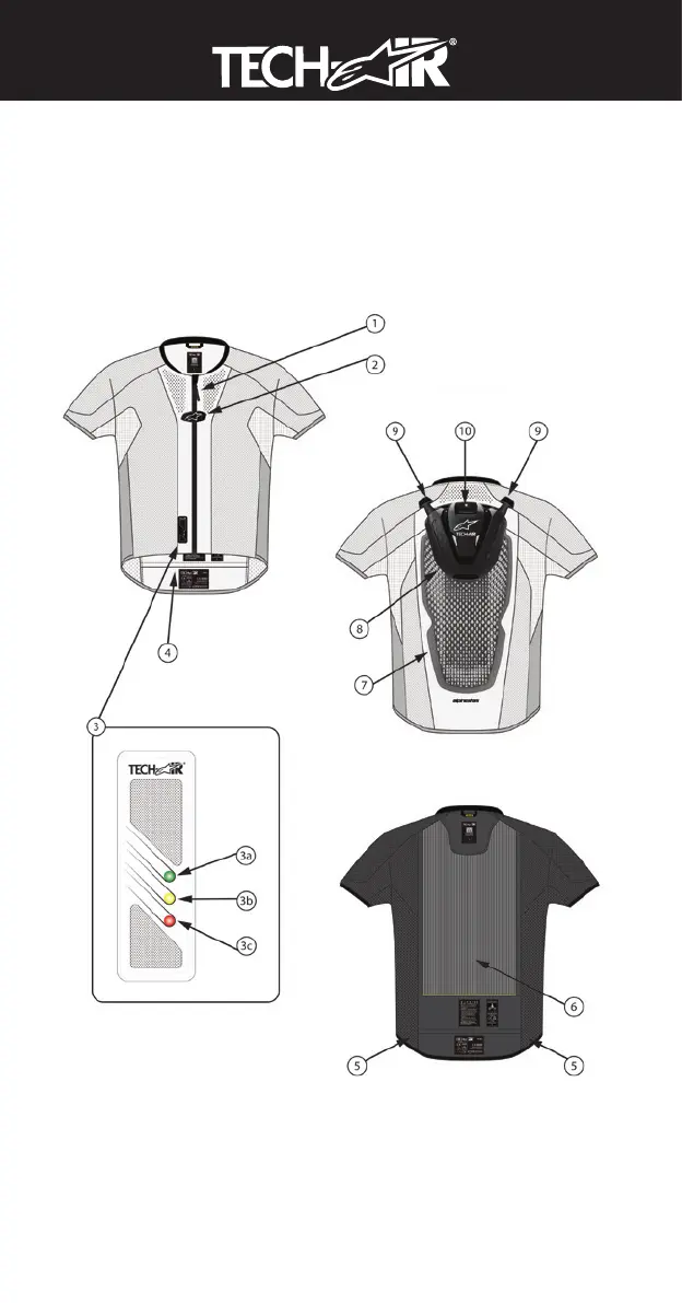 以下の図は、Tech-Air® 5 システムのさまざまな部分を示しています。番号の付いた部分は、