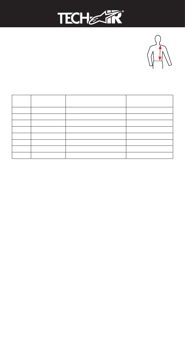 システムのサイズを選択する前に、正しいウエストから肩までの長さを必ず確