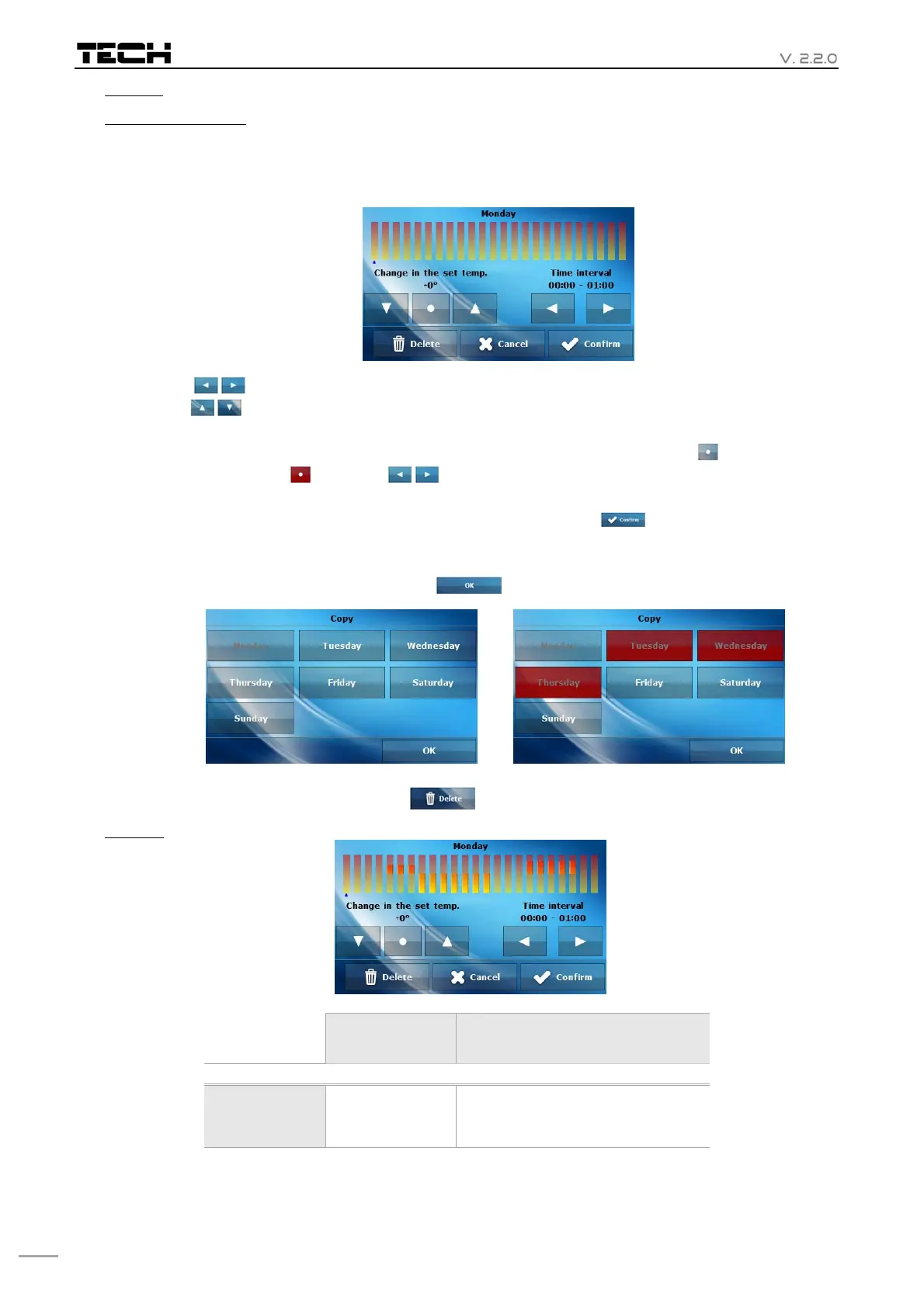 Thedisplayshowsascreenenablingtheusertocopythesettingsforthenextday.