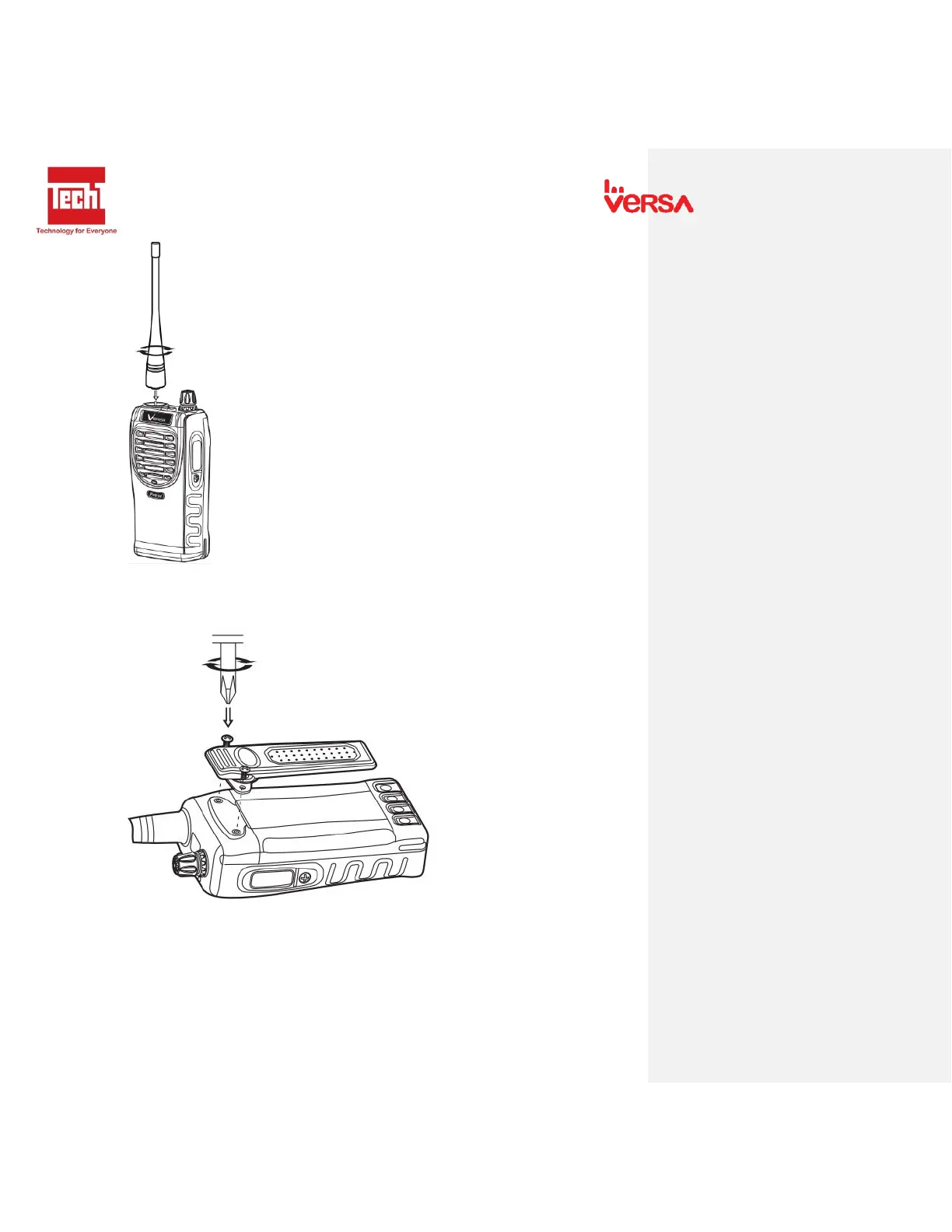 Fit the belt clip at the back of the transceiver. Screw the belt clip.