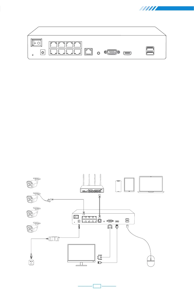 USB: For connecting USB mouse to control NVR or USB disk to backup video.