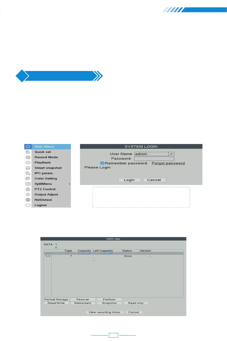 Right click the mouse→【Main Menu】→【Advanced】→【HDD Info】
