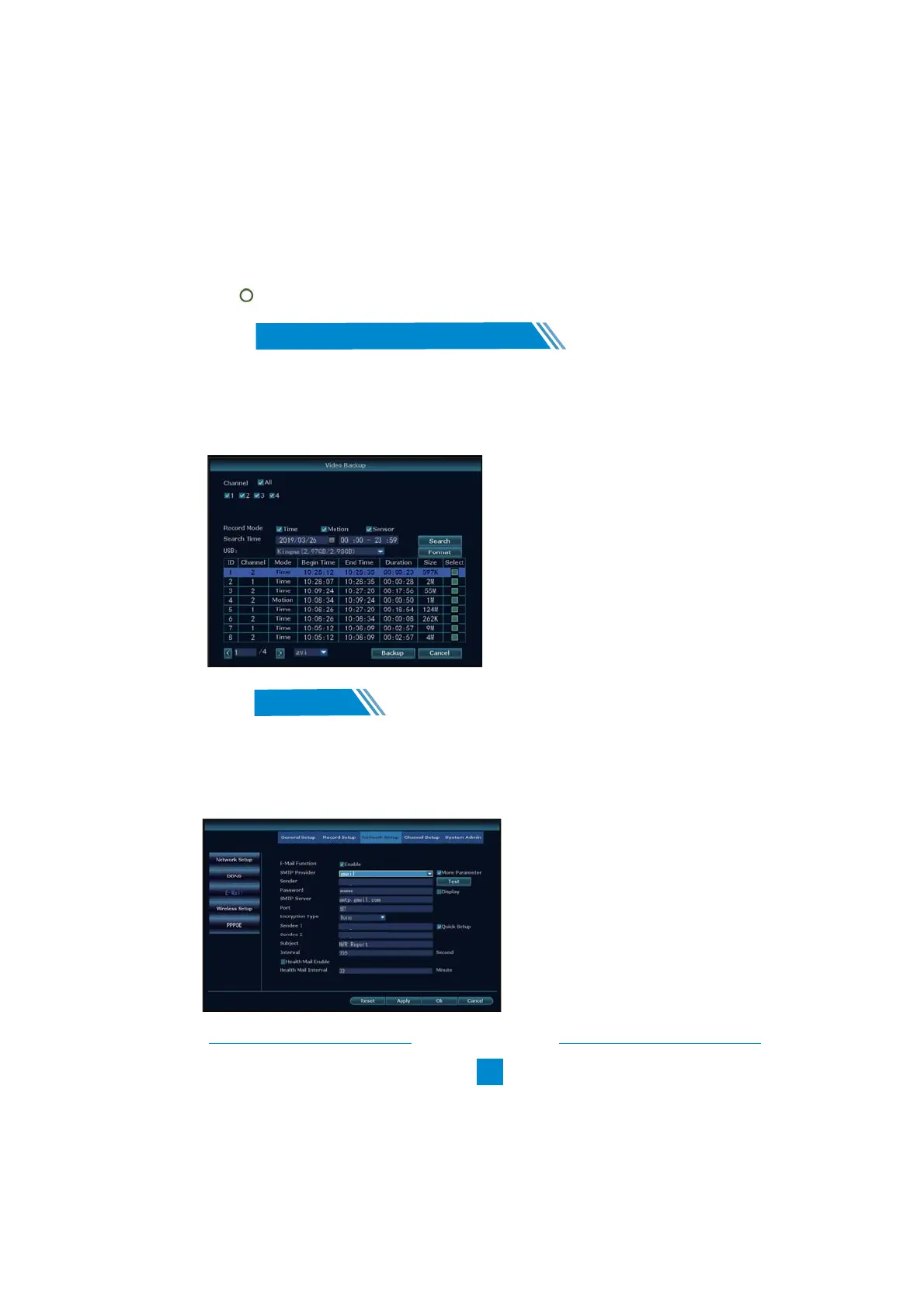 2. Right click the mouse > Video backup > Choose the channel, Record