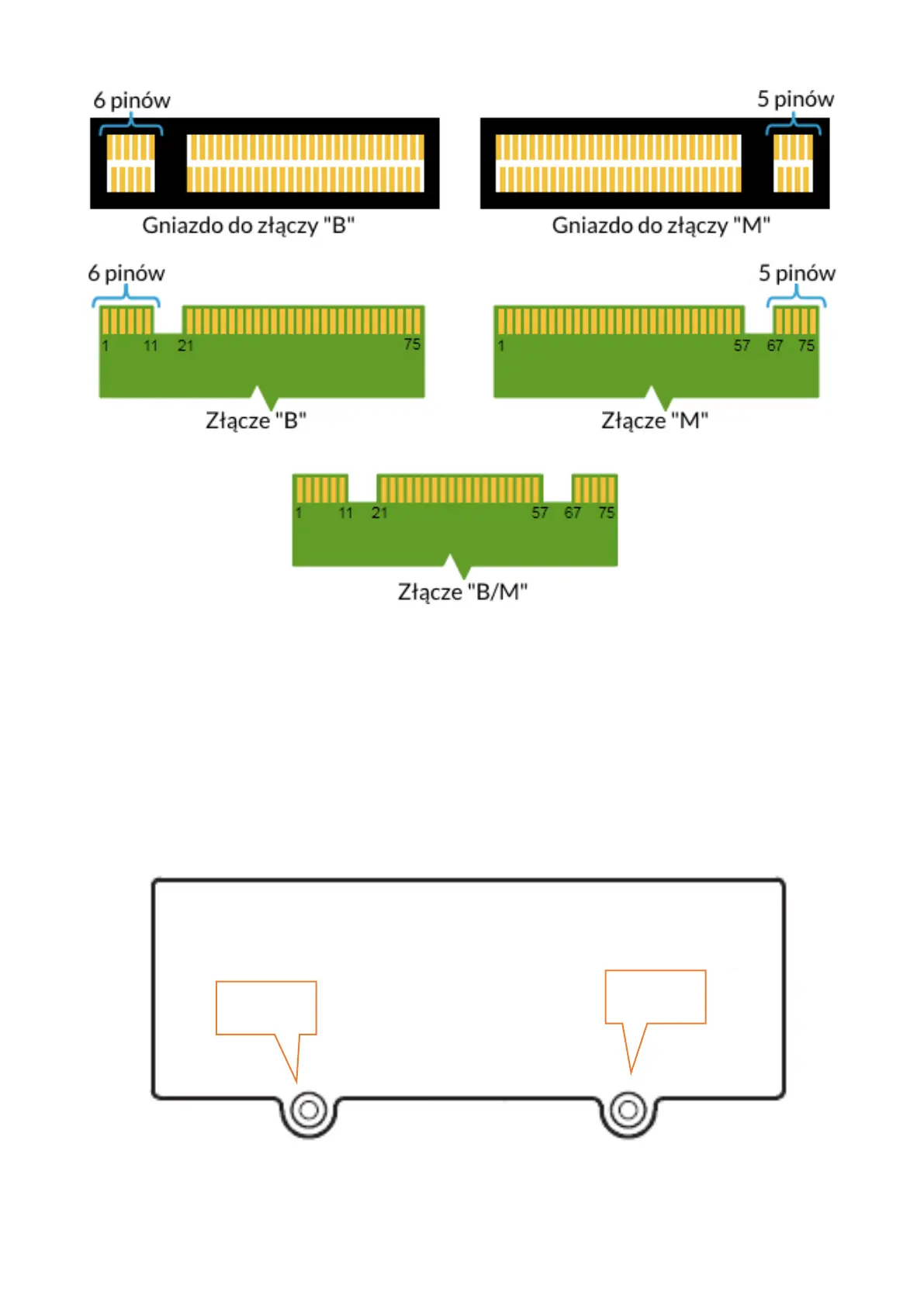 Różnice pomiędzy gniazdami i złączami B i M. Źródło: Wikipedia.org