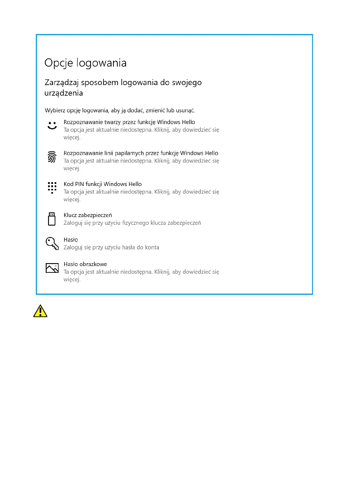 Start > Ustawienia > Konta > Opcje logowania.