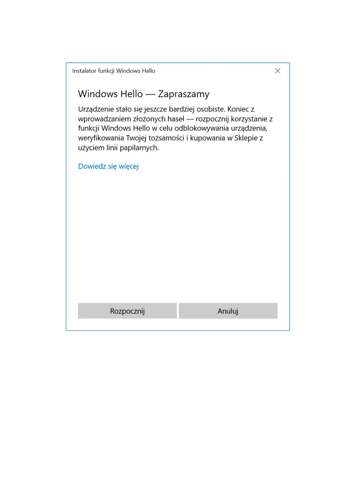 Wybierz opcję Rozpoznawanie linii papilarnych przez funkcję Windows Hello.