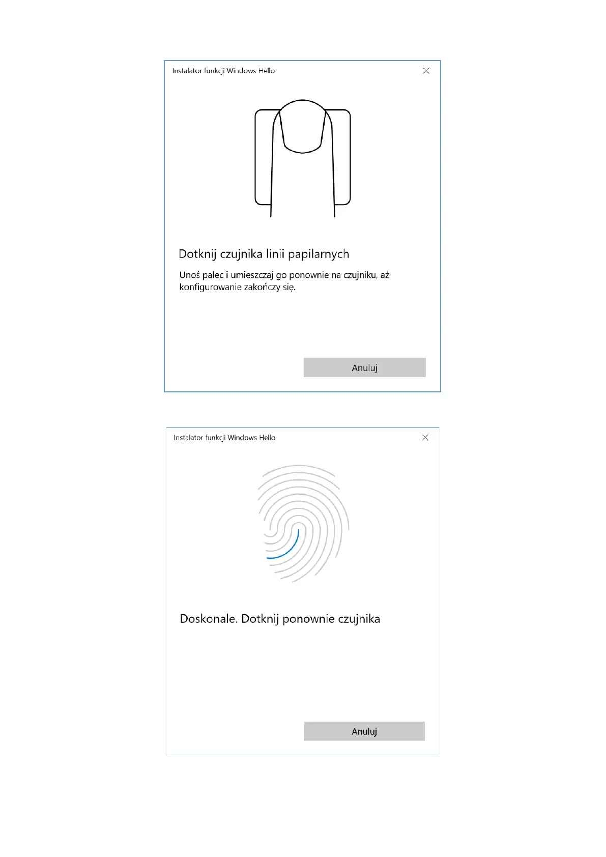 Postępuj zgodnie z opisami i sugestiami kreatora. Przemieszczaj nieco palec