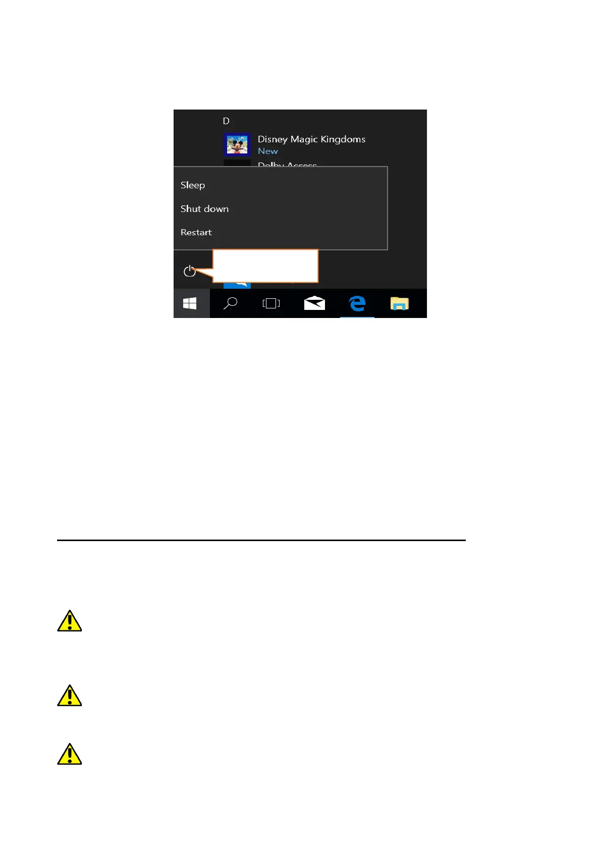 To turn your laptop into the sleep mode, turn it off or restart, select the start