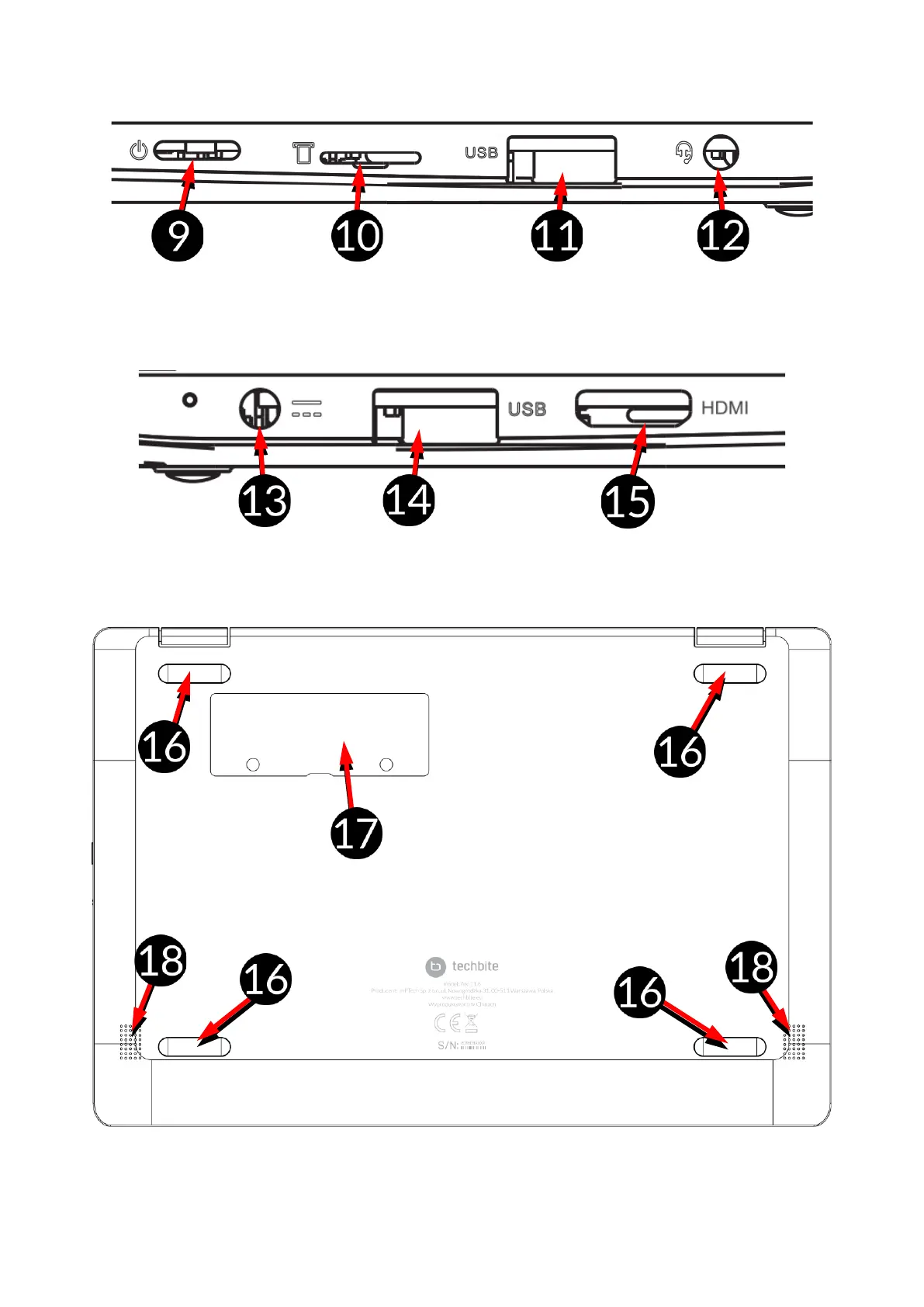 techBite ARC 11.6 64GB HD - Pravá Strana; Ľavá Strana; Spodná Strana