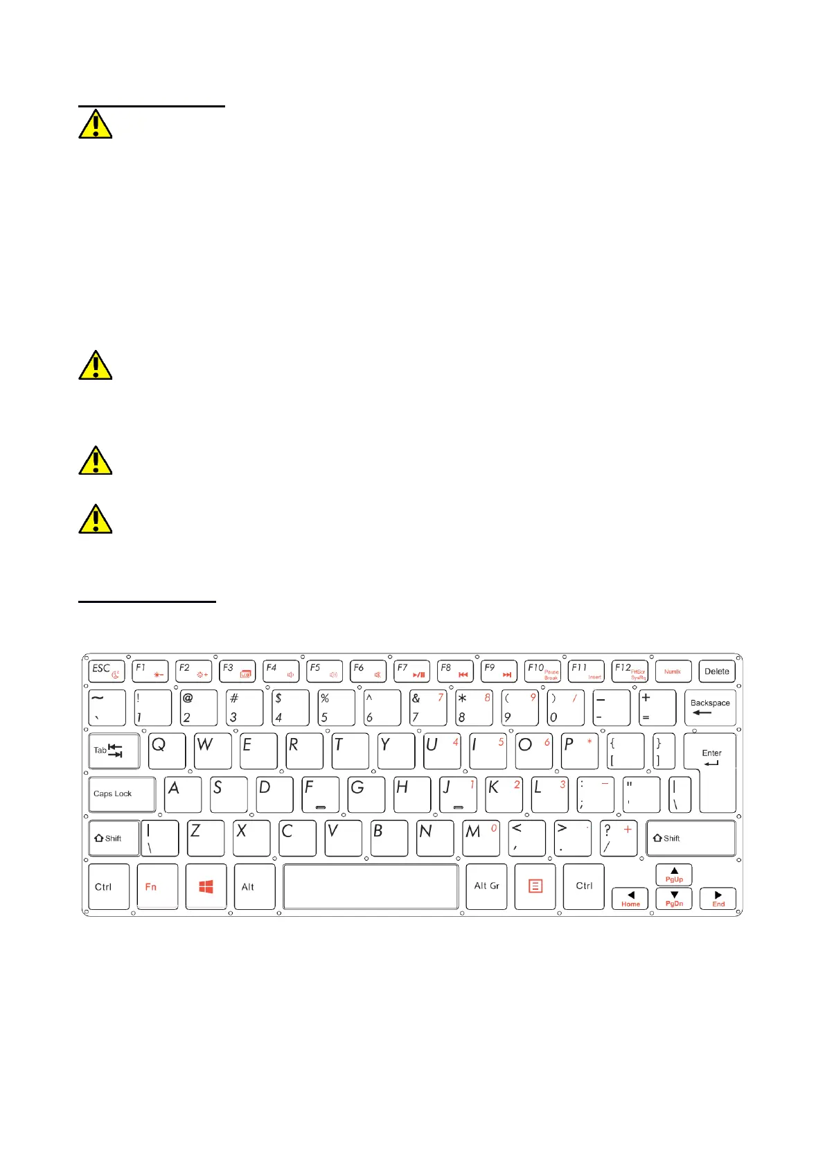 Klávesnice notebooku má standardní rozložení QWERTY. Kromě toho jsou
