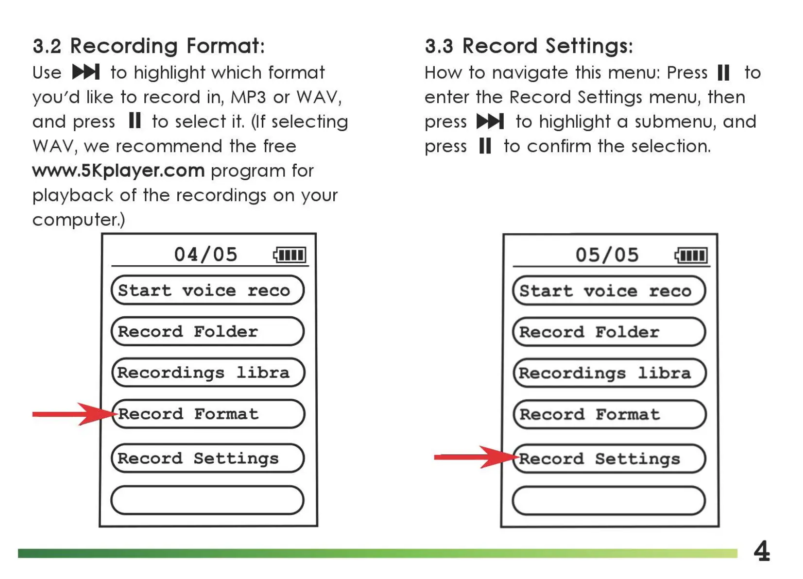 Record Settings menu,
