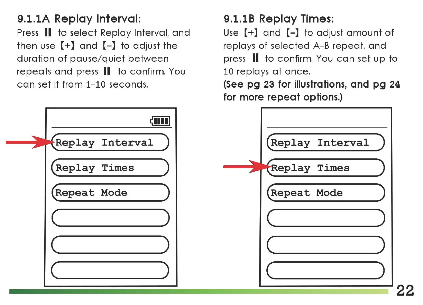 Techerific DeciVibe - Replay Interval Adjustment; Replay Times Configuration