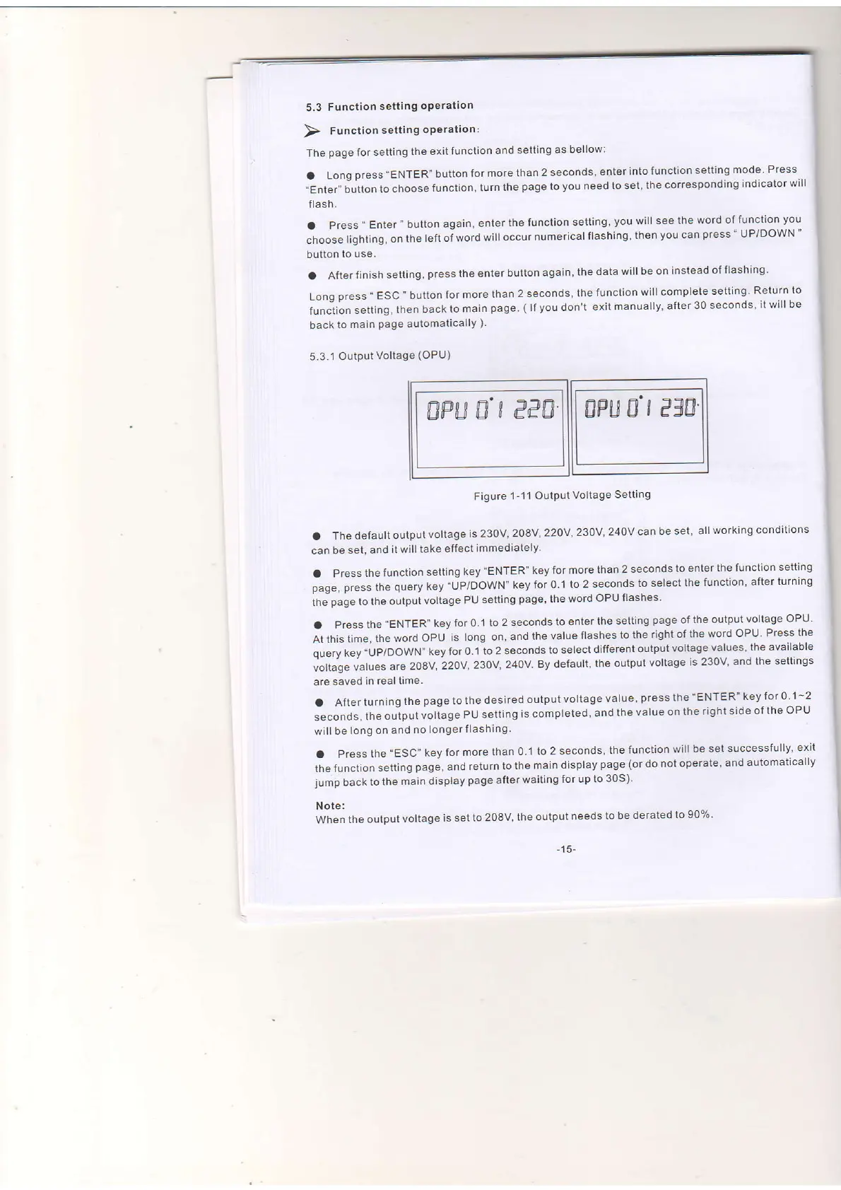 .Pressthe"ENTER"keyloro.lto2secondstoenterthesettingpageoftheoutputvo|tageoPu.