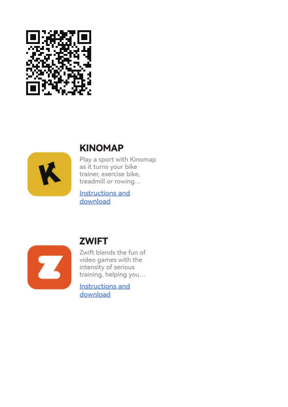 Scan the QR code to download the KINOMAP or ZWIFT APP,